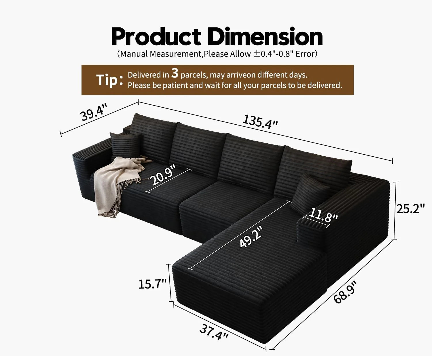 107.5" Cloud Modular Sectional Sofa Couch with L-Shape Chaise,Modern Minimalist Upholstered Couches