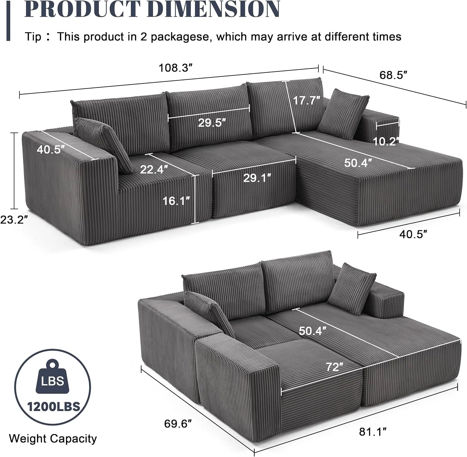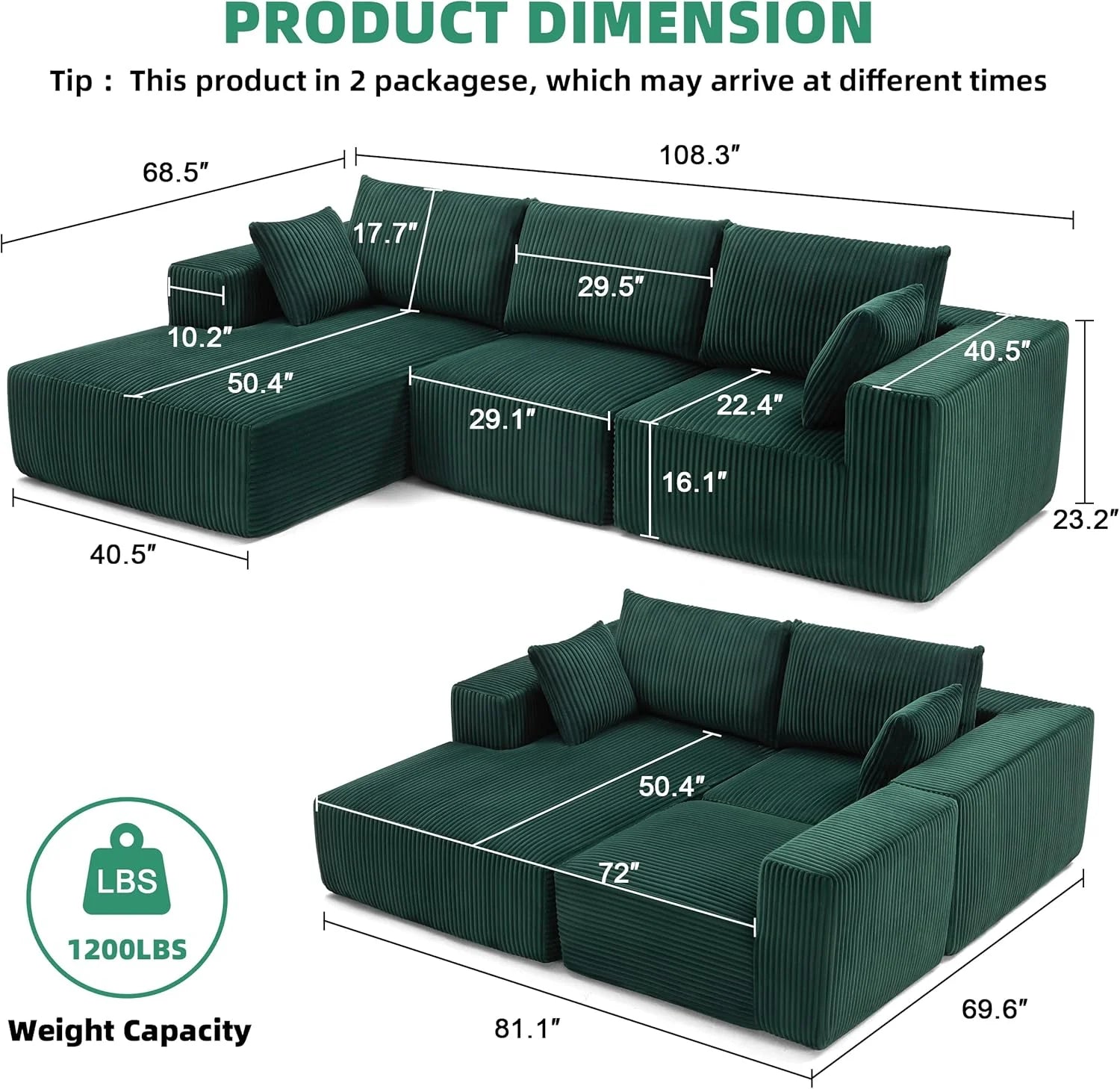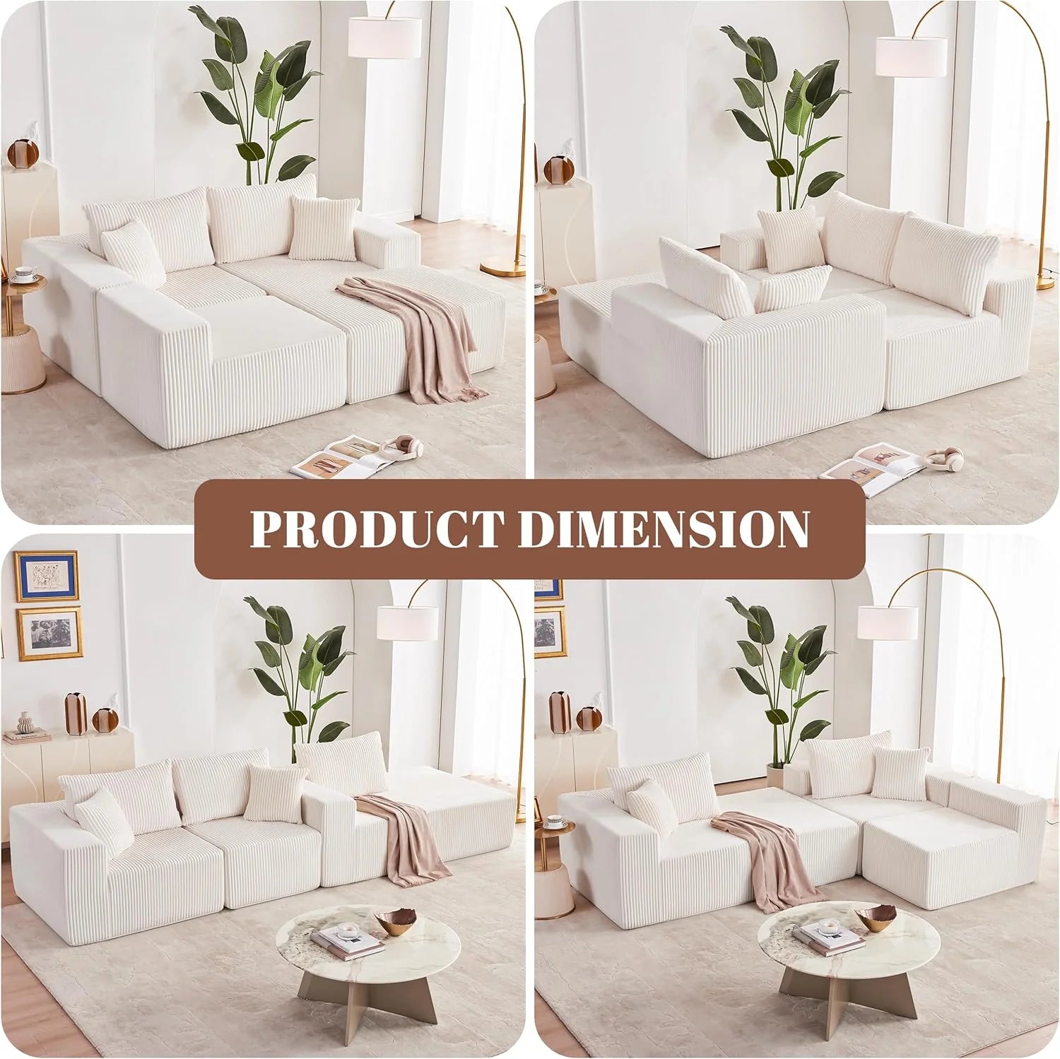 108-inch modular sofa, cloud modular sofa, with deep seat and reclining chair, upholstered sofa