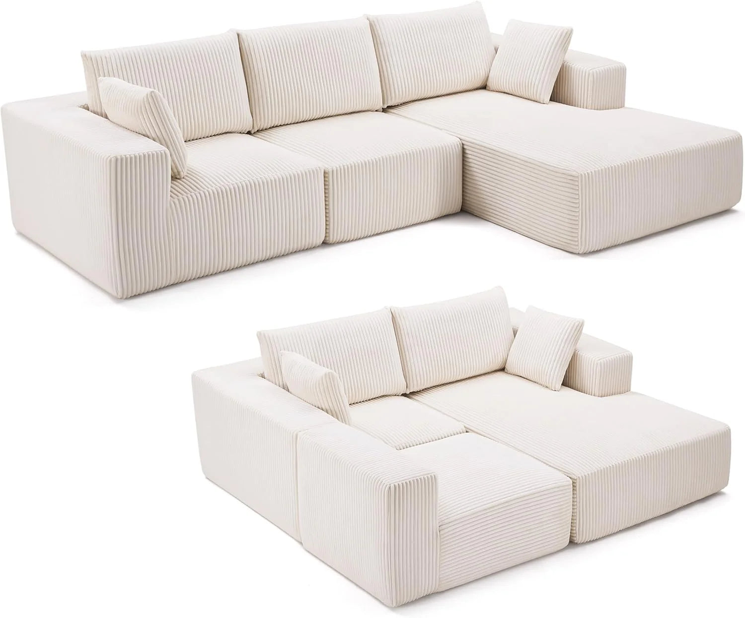 - Modular Sectional Sofa: Discover the adaptability of our minimalist modular sofa, designed for flexible configurations to fit your lifestyle. This L-shaped sectional set is composed of three pieces, maximizing space efficiency when placed against a wall. Whether used as a sofa or sofa bed, it offers endless layout options to suit your comfort and style