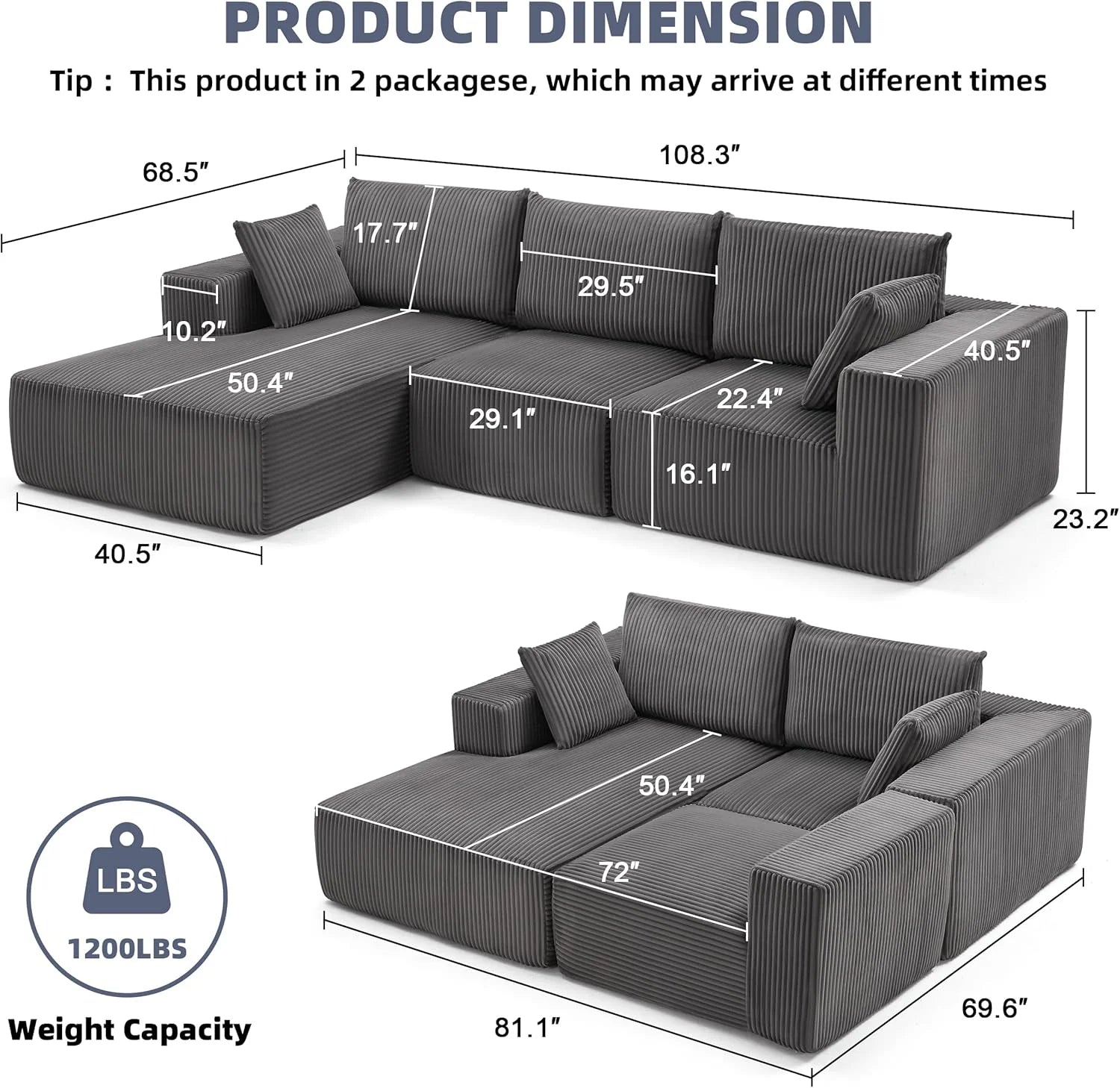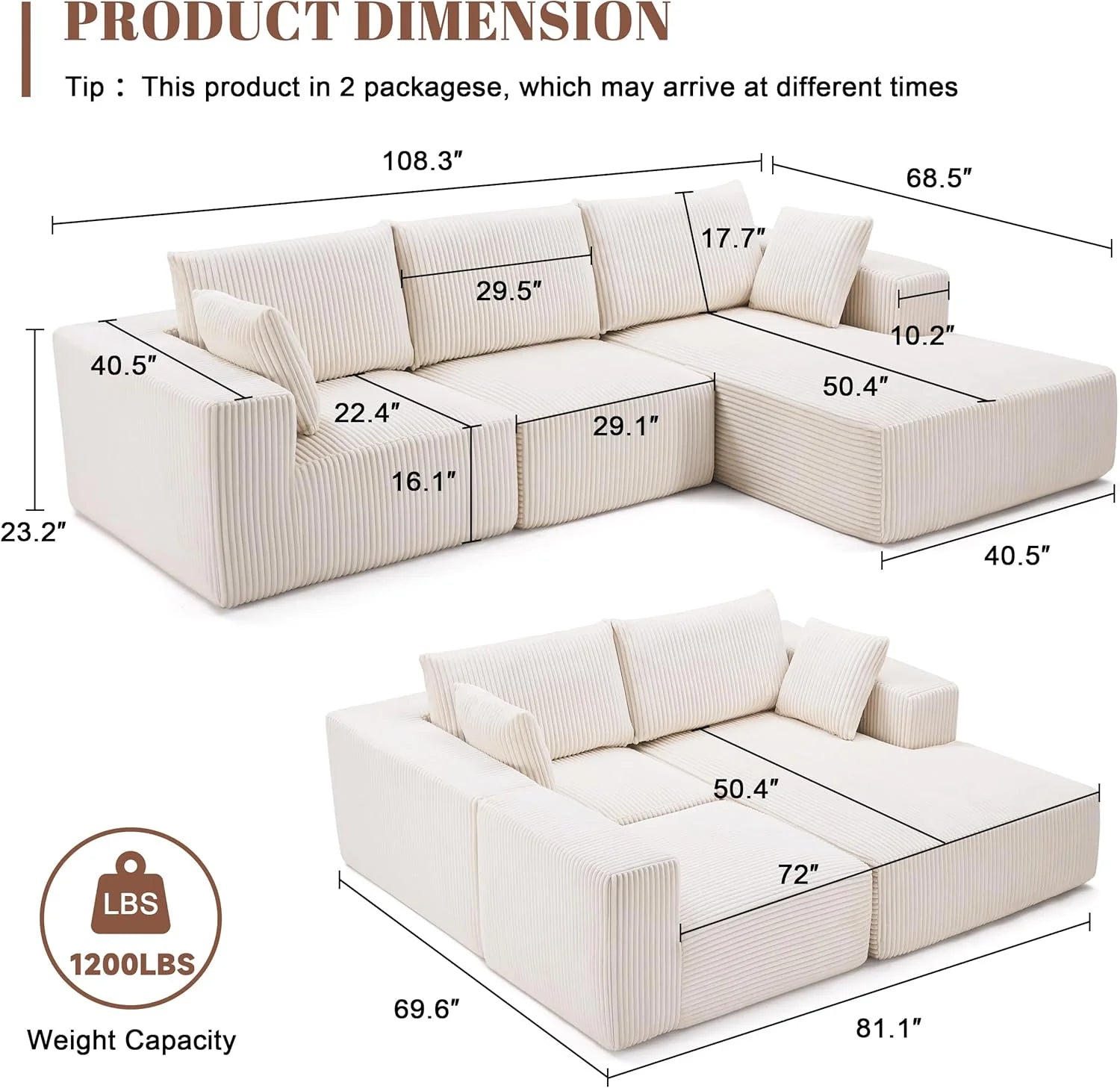 - Multiple Package: Multiple packages may arrive separately. If you have any questions about your cloud couch sectional or need assistance, please reach out to us as soon as possible