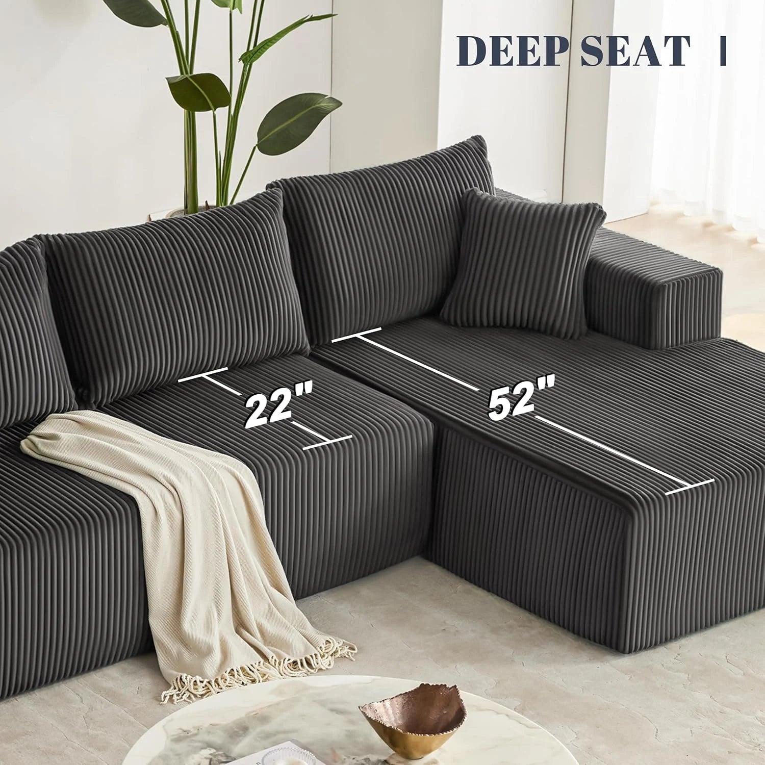 - Comfortable Chaise Design: Experience exceptional comfort with our spacious sofa, featuring a 29.3" seat depth. The chaise lounge is perfect for relaxing, designed with high-resilience foam for superior support and long-lasting durability, ensuring a luxurious seating experience