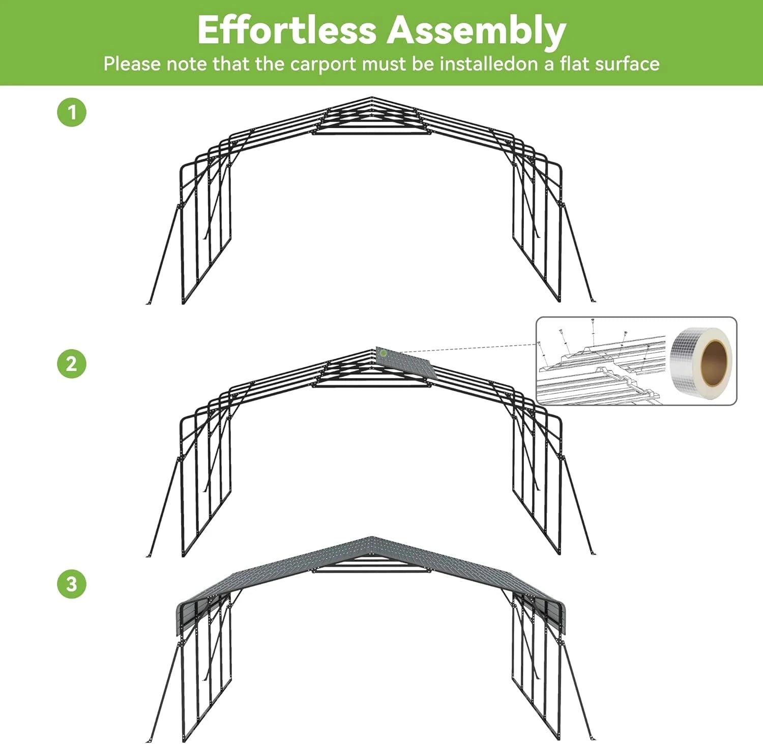 - Kind Reminder: This carport will be shipped in two boxes, which may arrive on different dates. Please be patient and wait for all the boxes to arrive before installing (if you have any questions about our products, please feel free to contact us).