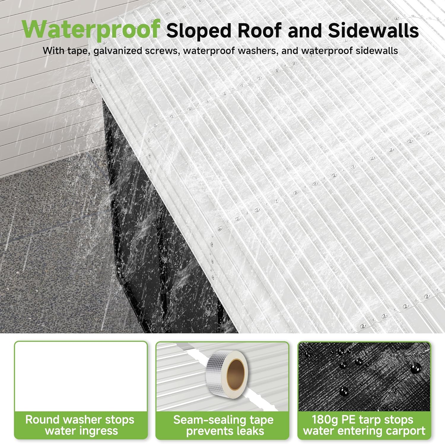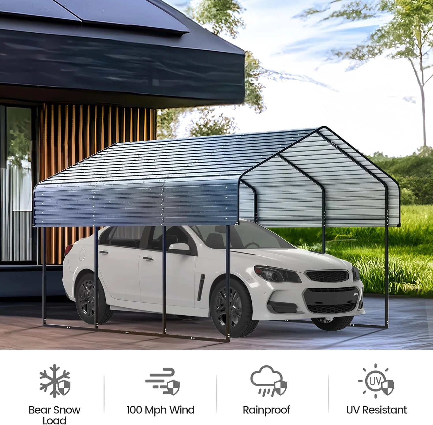 - Outstanding Durability: The steel bracket and galvanizing process of the metal carport offer strong rust resistance. The design allows the structure to withstand gusty winds, heavy rain, snow and other inclement weather conditions, effectively protecting your vehicles. The carport is engineered to the wind rating of 100MPH and has a snow load capacity of 35 PSF.