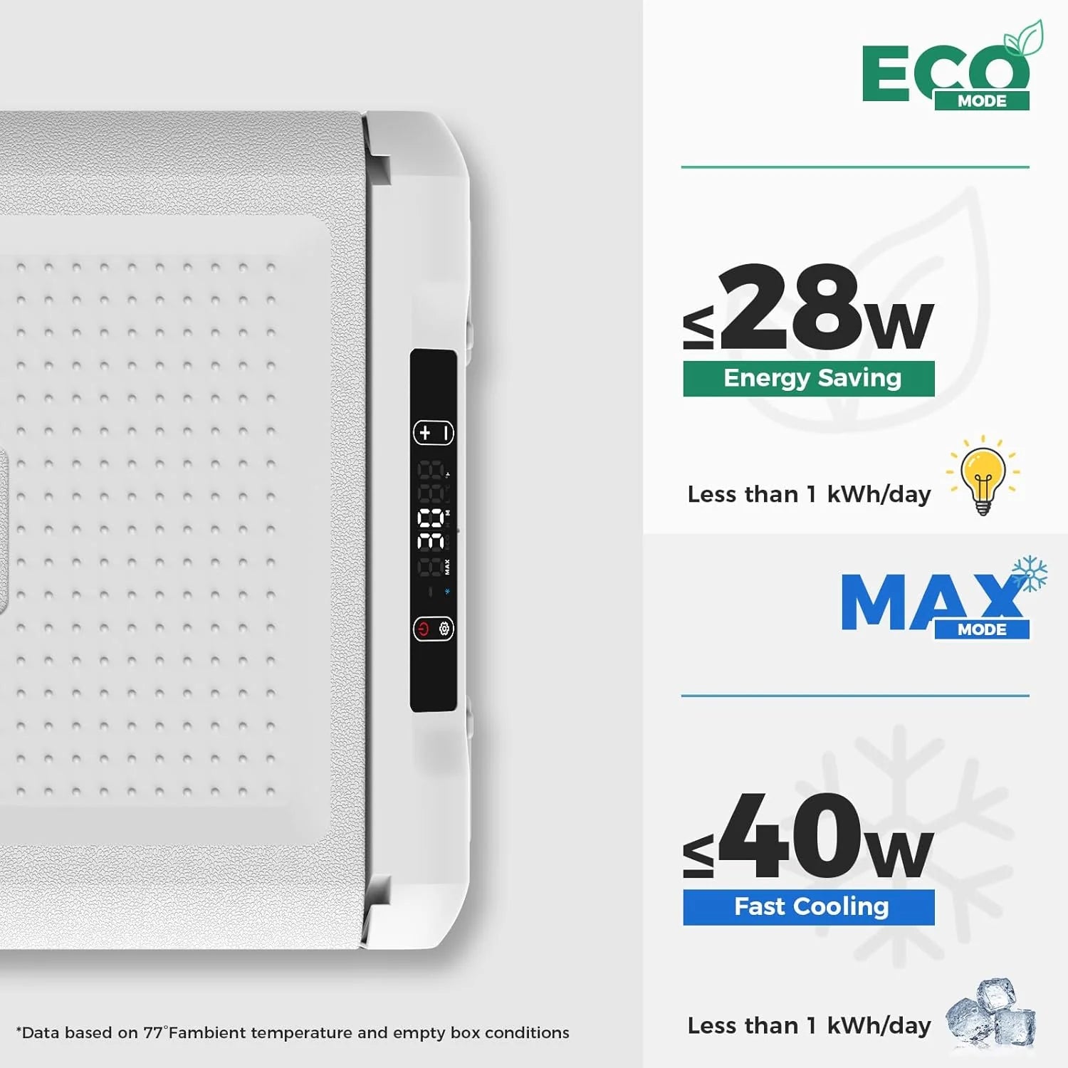 - 28W Low Power Consumption: With the Smartele self-developed compressor,this electric cooler consumes only 28W in ECO energy saving mode and 40W in MAX mode.This portable Fridge consumes far less than 1kWh/day for its intelligent cycle work,save more money