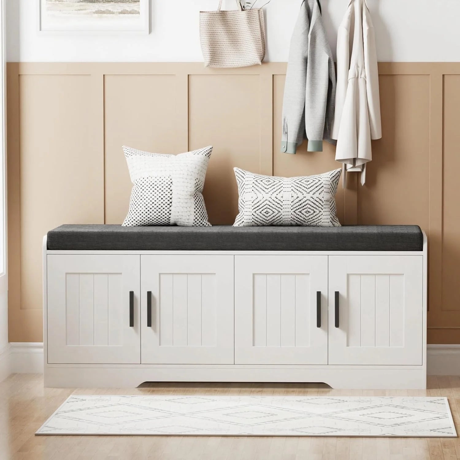 Entryway Bench with 4 Doors and Adjustable Shelf
