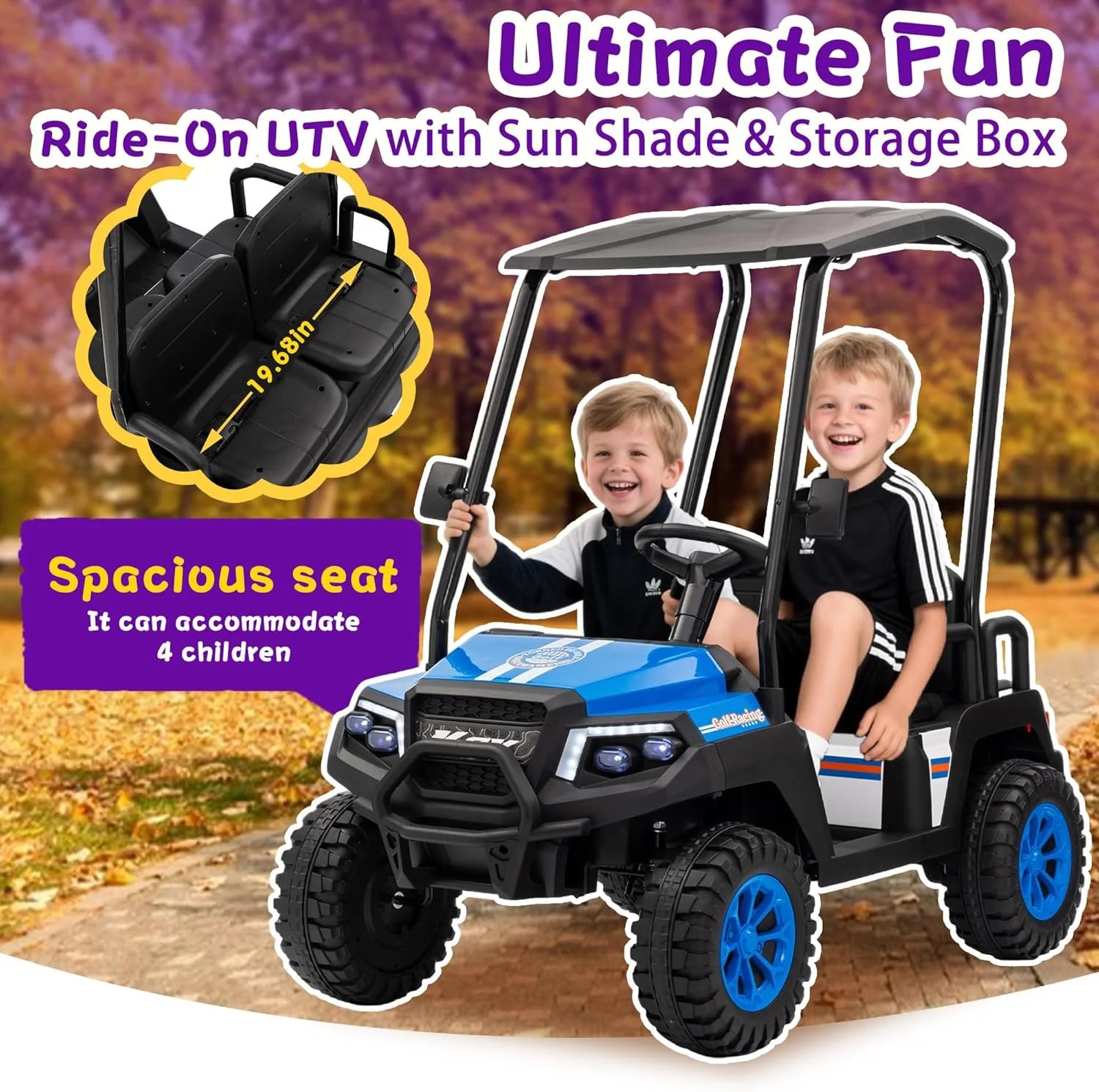 - Four-seat design:The spacious four-seat design easily accommodates multiple children, allowing siblings or friends to enjoy the ride together. Each seat features a comfortable backrest and safety armrests, ensuring a pleasant experience for every little passenger.