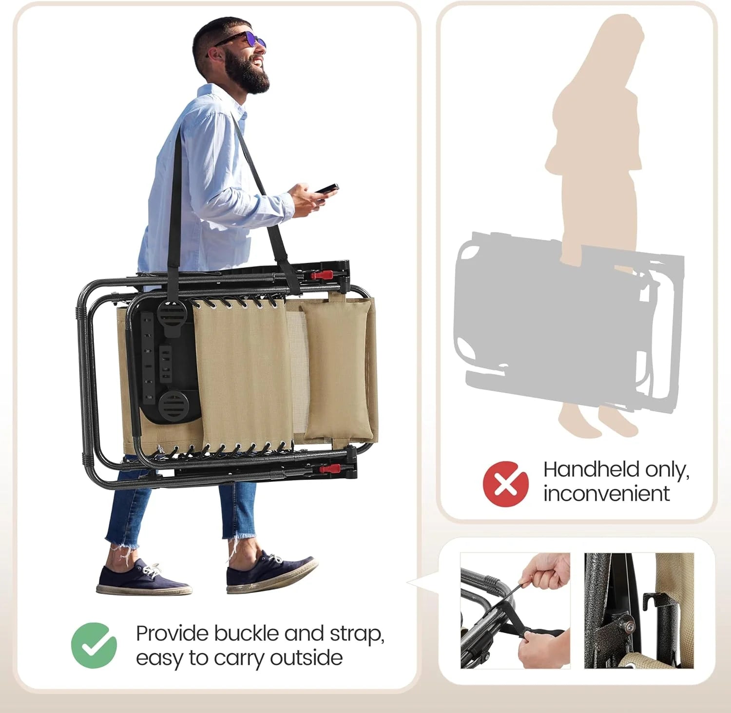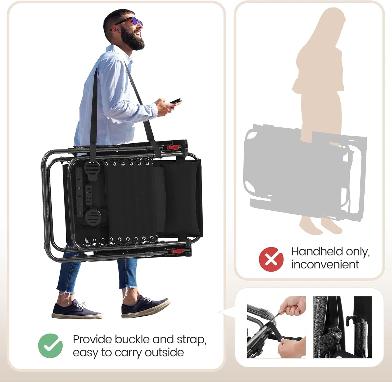 - This 3pcs Texteline Outdoor Set offers a comprehensive outdoor relaxation solution, featuring two folding zero gravity camping recliners and a side table.