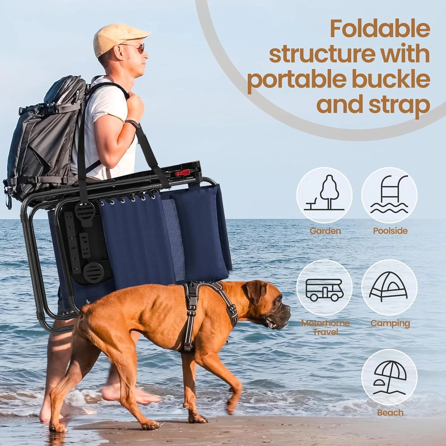 The folding camping reclining chairs feature a reclining system and adaptive Texteline surface, allowing their backrests to be firmly locked at your needed angles for cozily reading, fishing, sunbathing, BBQ, etc. The fabric, fixed to the frame with elastic straps, can adapt to your body, providing you with soft while spacious support