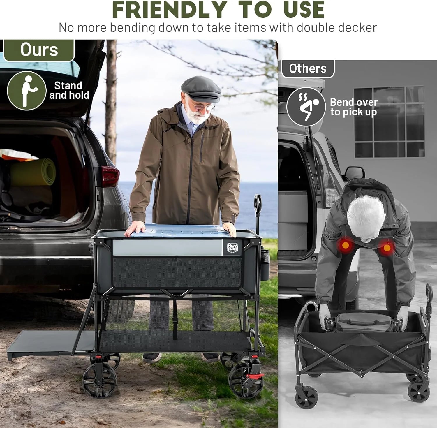 400L Large Capacity Folding Double Decker Cart with Brakes, 54 Inch Extra Long Extended Cart, 450 Pounds Heavy Duty Folding Cart