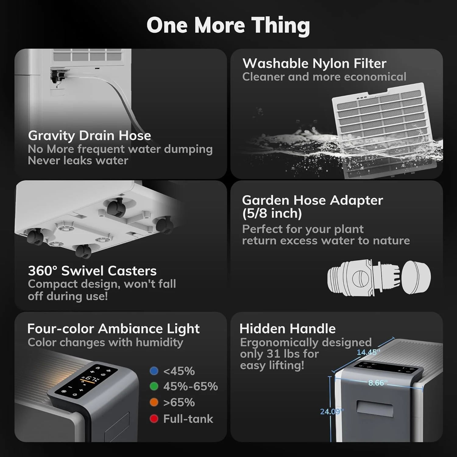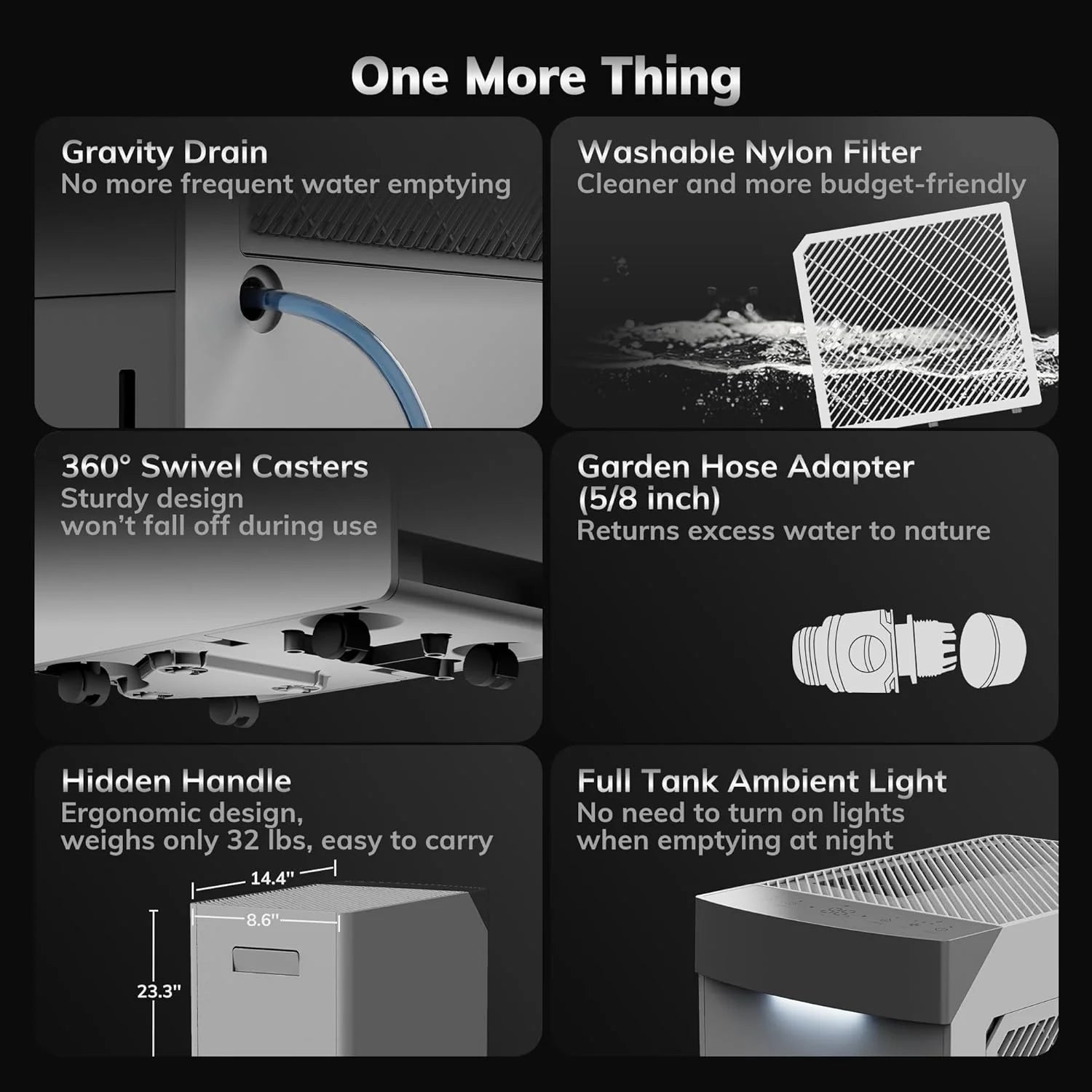 - 【Consider Other Expenses Before Making Choice】Compared to non-Energy Star inefficient products,Rhea efficiency is increased by up to 50%, saving you up to $1000 on electricity bills annually (operating 24/7 year-round). When purchasing a dehumidifier, consider not only the performance and purchase cost of the machine,but also the running costs over the next few years