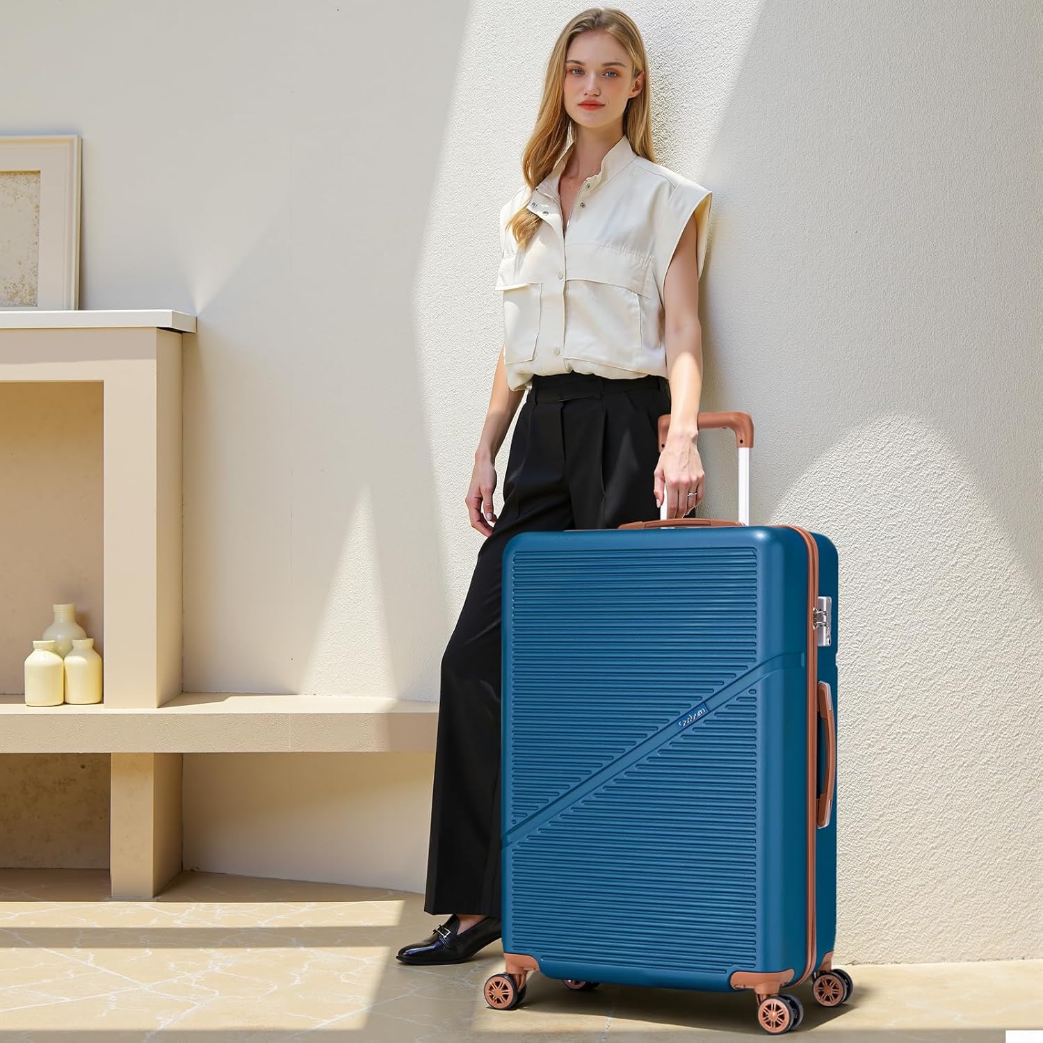 - 【High Quality ABS Material】Made from lightweight ABS material, the hard luggage set adds a protective layer to the hard shell, making it more impact resistant. This construction ensures your luggage withstands the rigors of travel while easy to handle