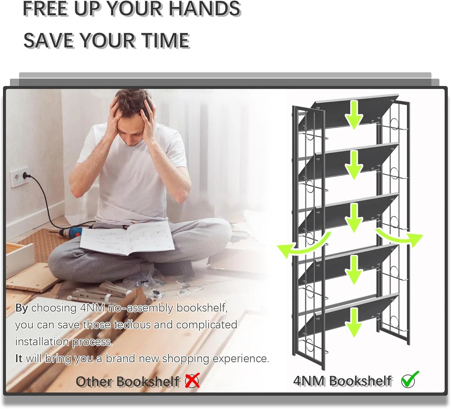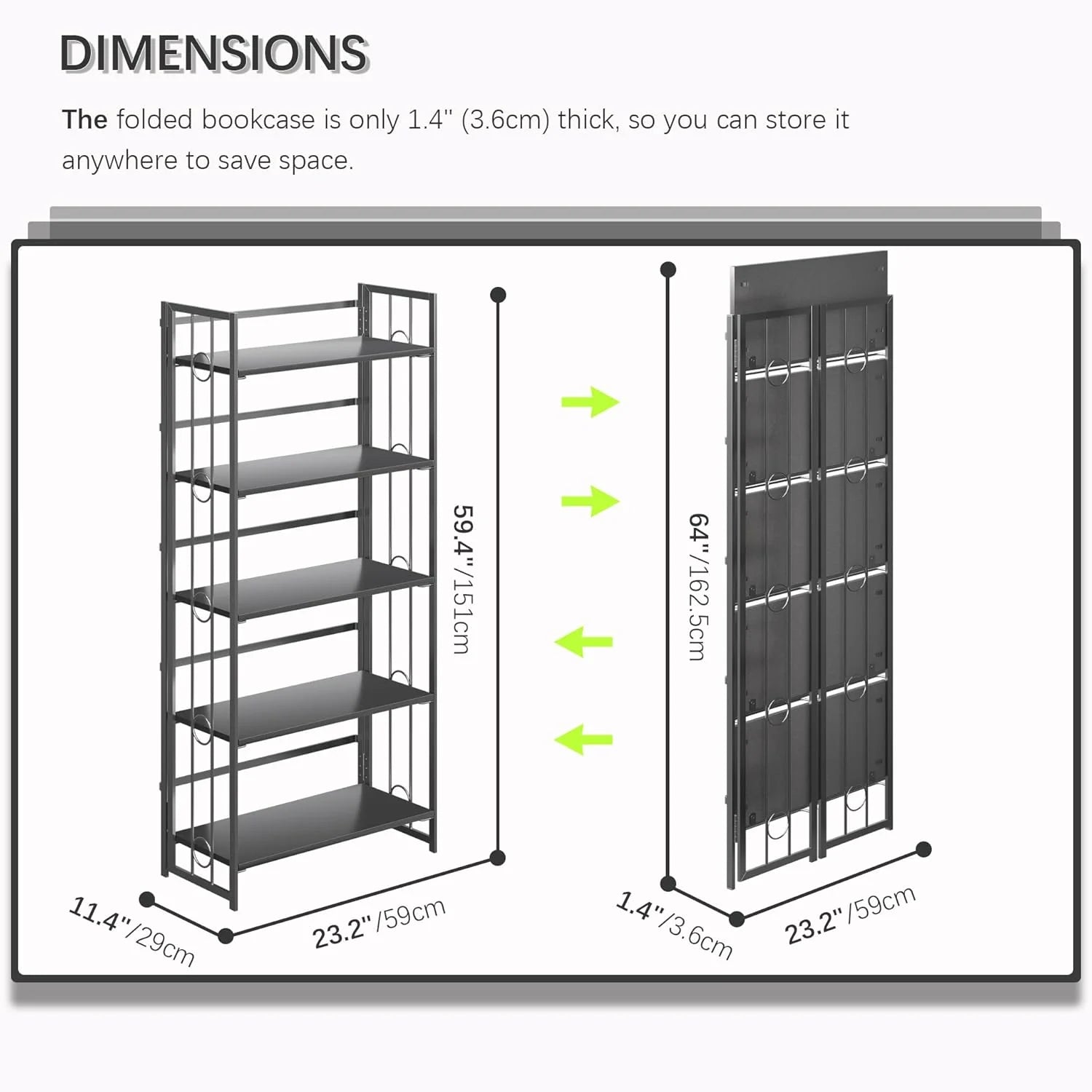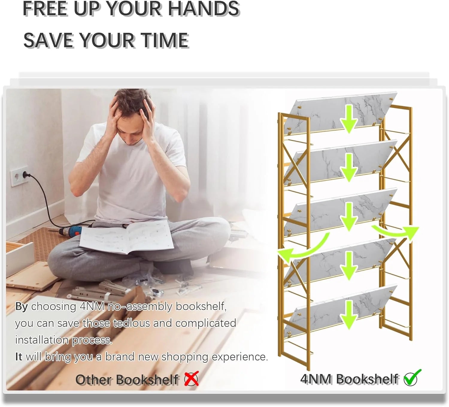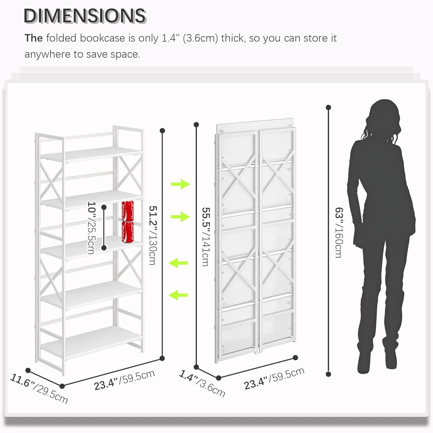 5 Tiers No Assembly Book Shelves 51.2" H Folding Bookshelf Bookcase