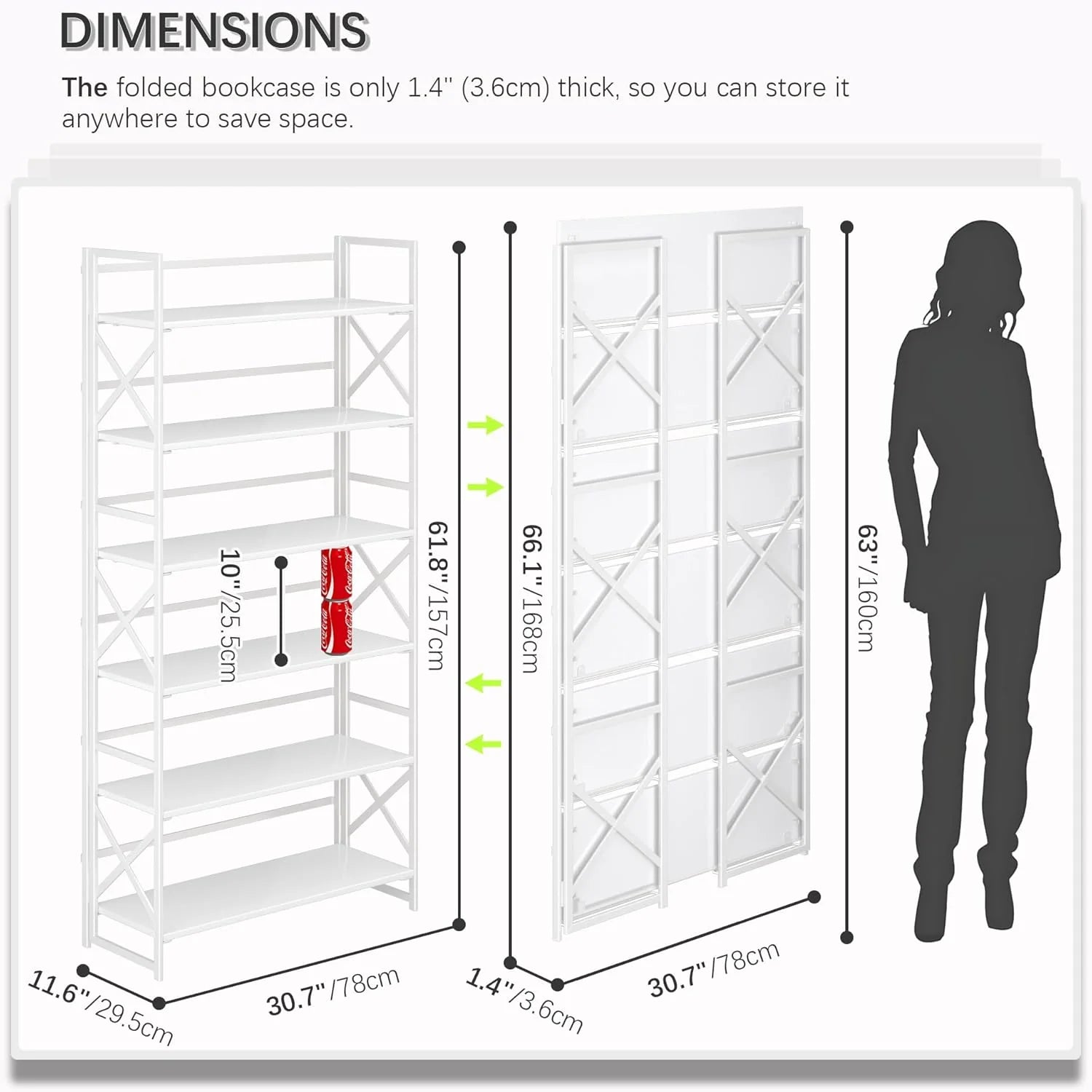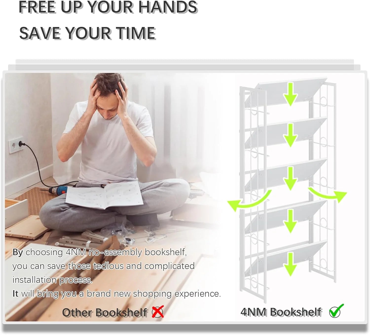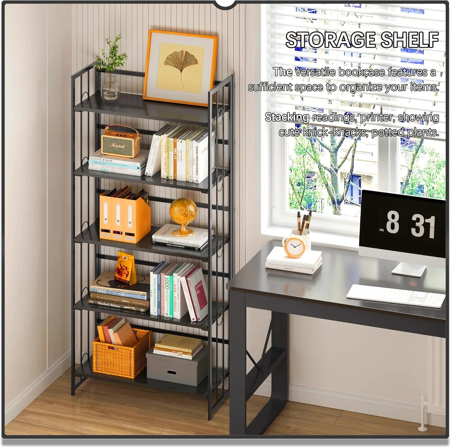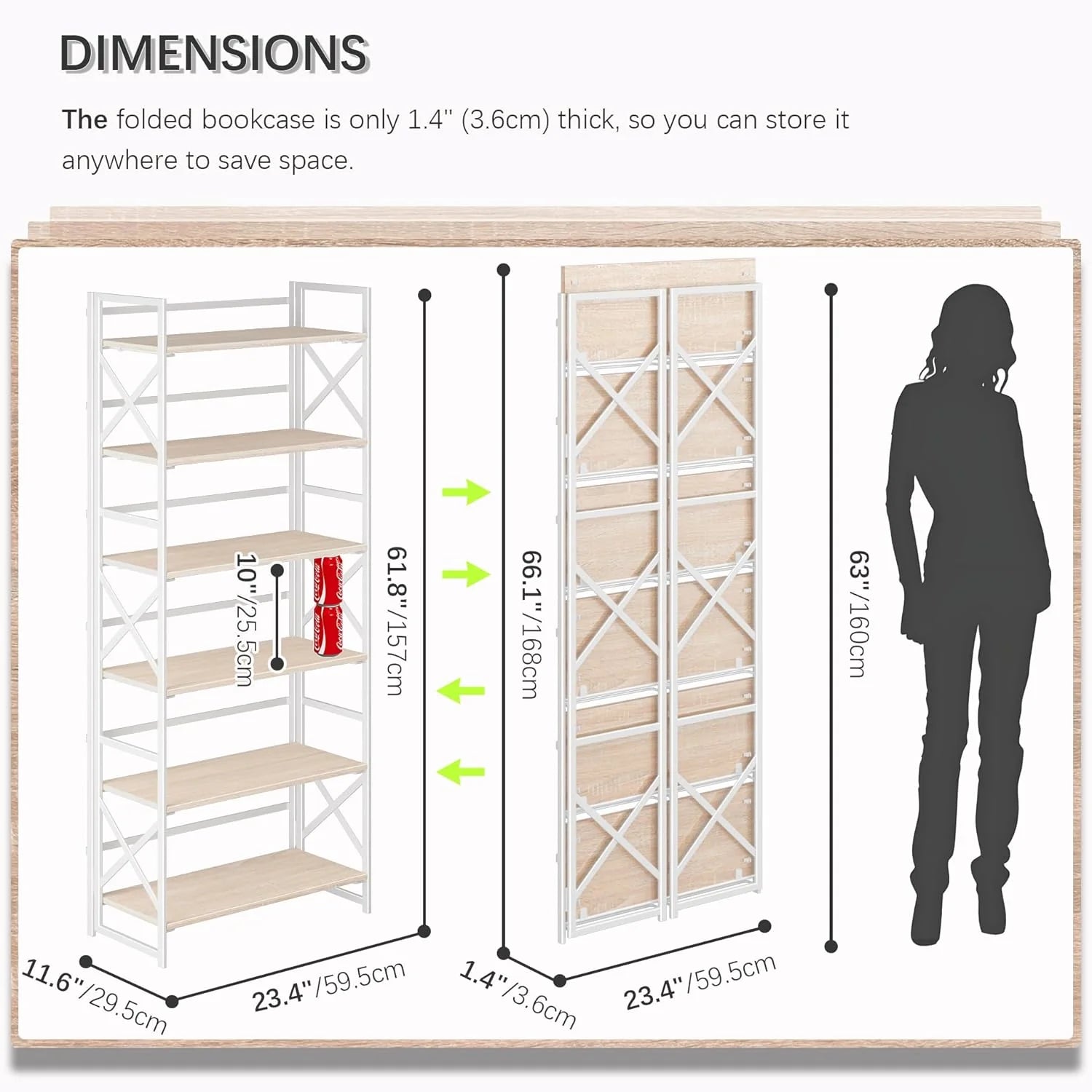 5 Tiers No Assembly Book Shelves 51.2" H Folding Bookshelf Bookcase