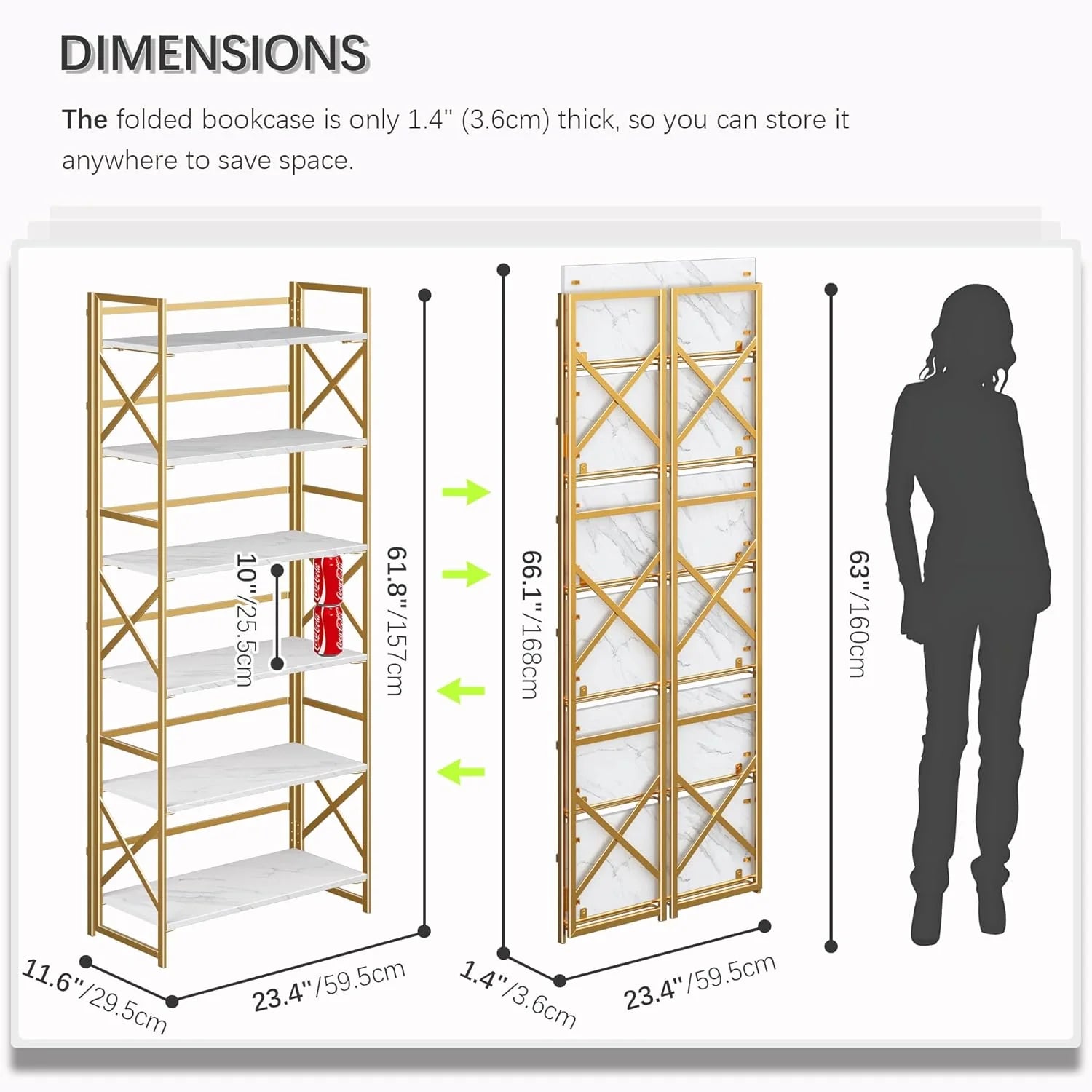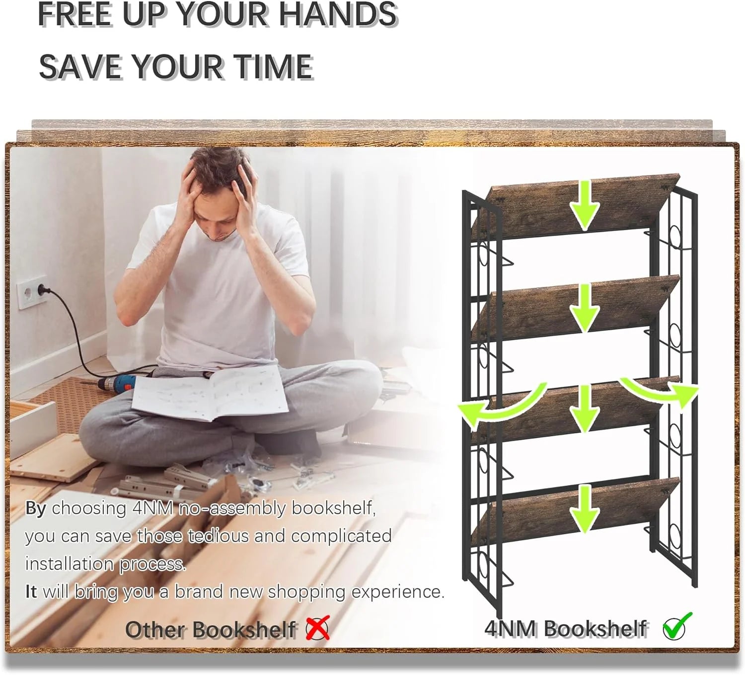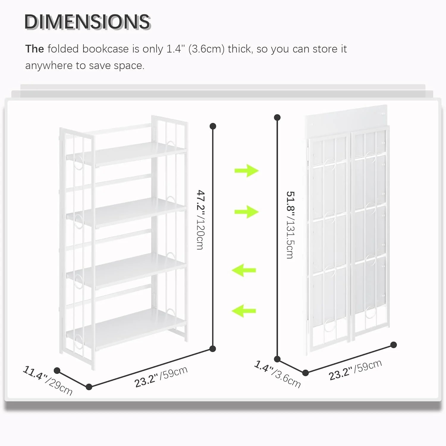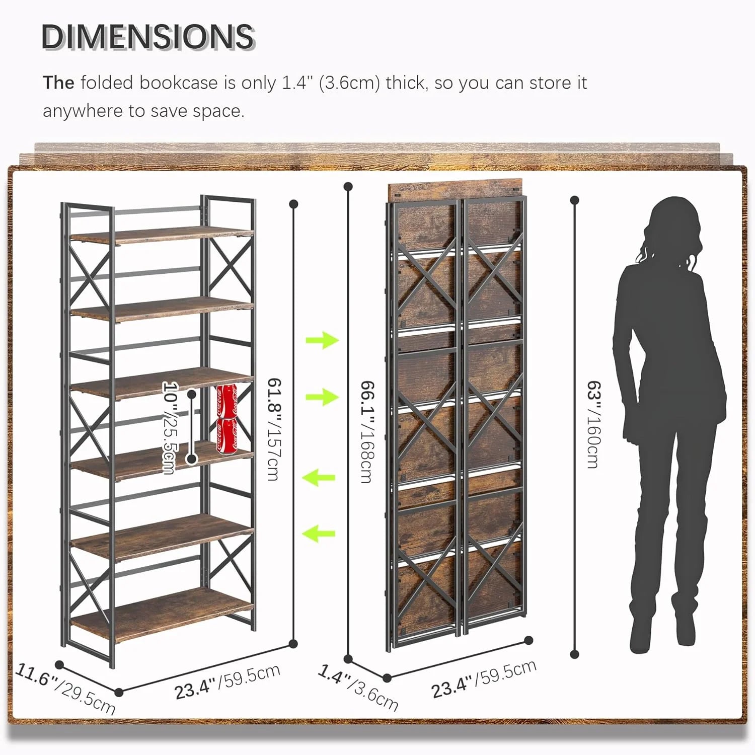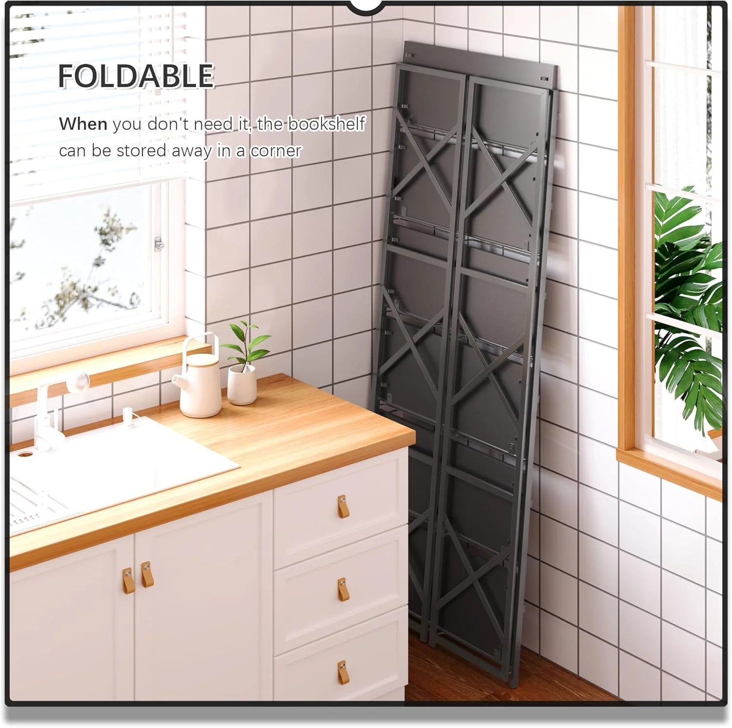 5 Tiers No Assembly Book Shelves 51.2" H Folding Bookshelf Bookcase