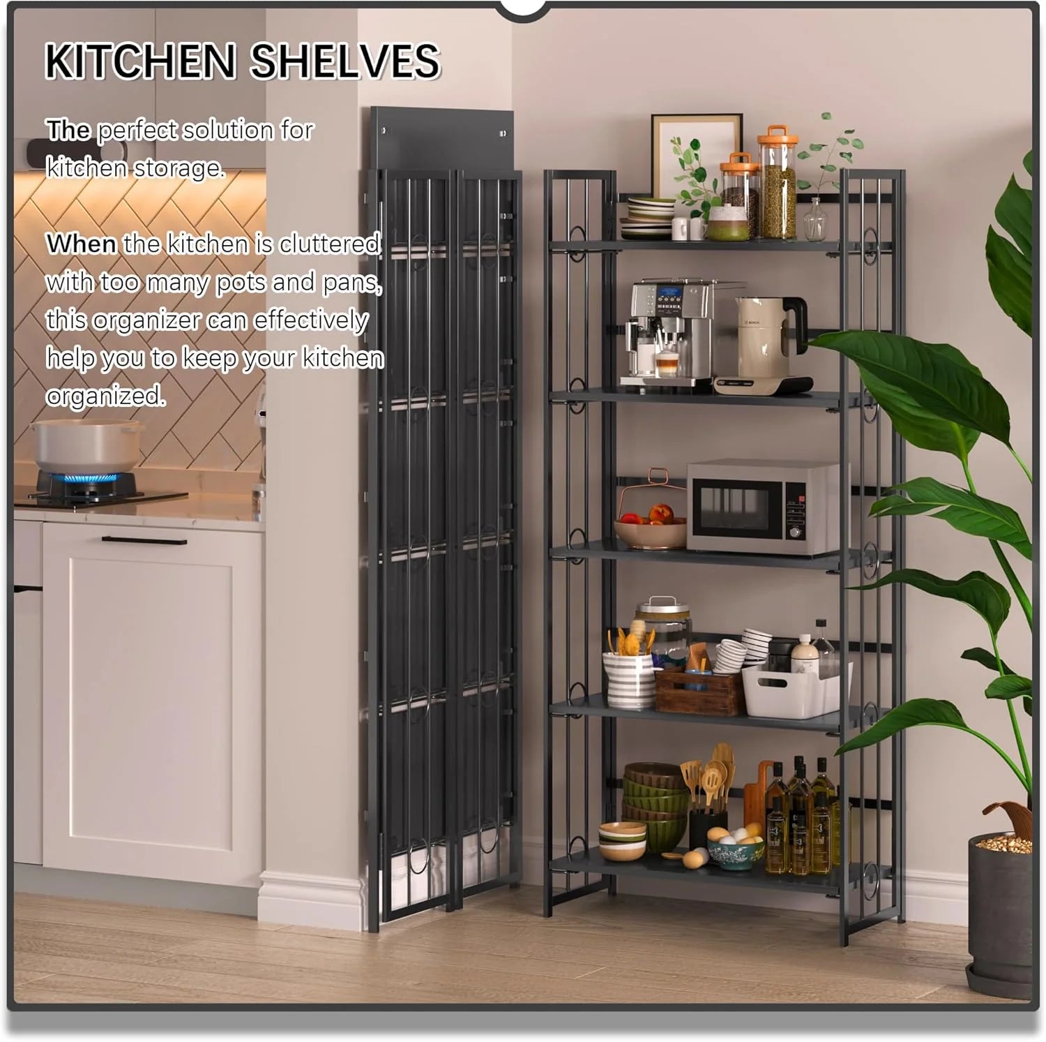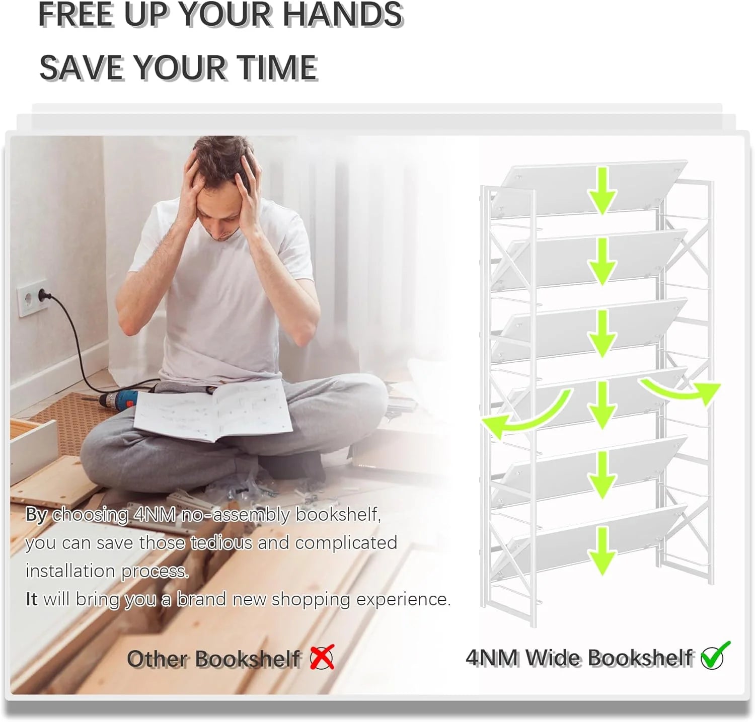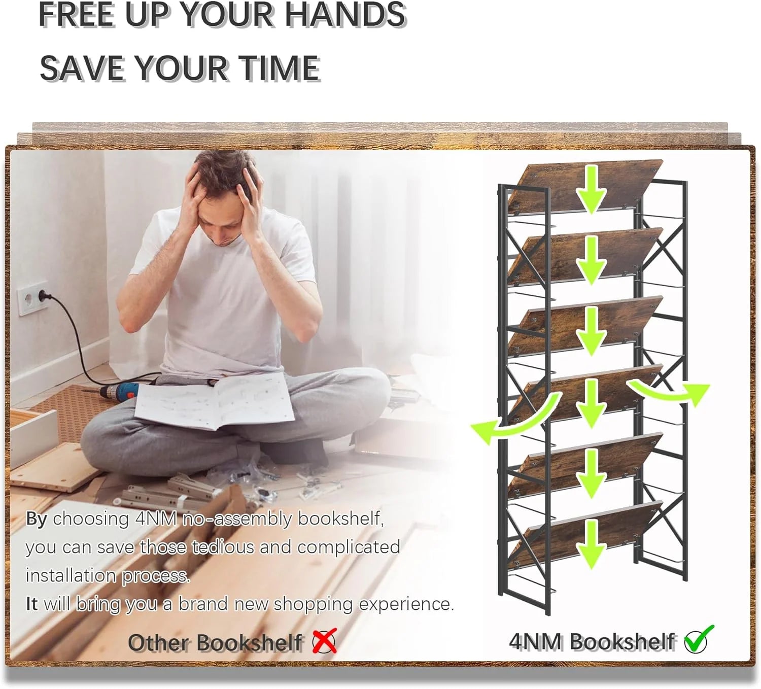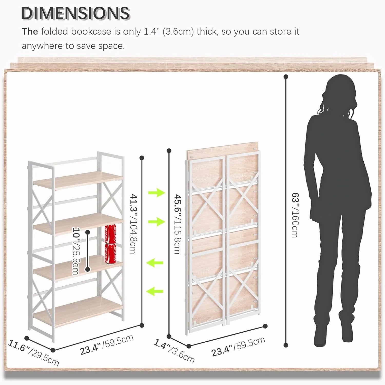 5 Tiers No Assembly Book Shelves 51.2" H Folding Bookshelf Bookcase