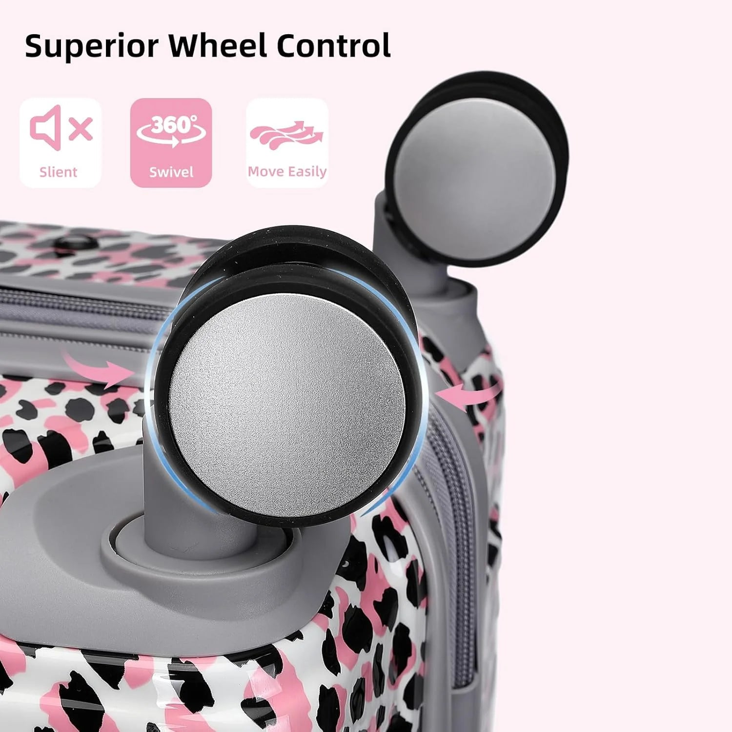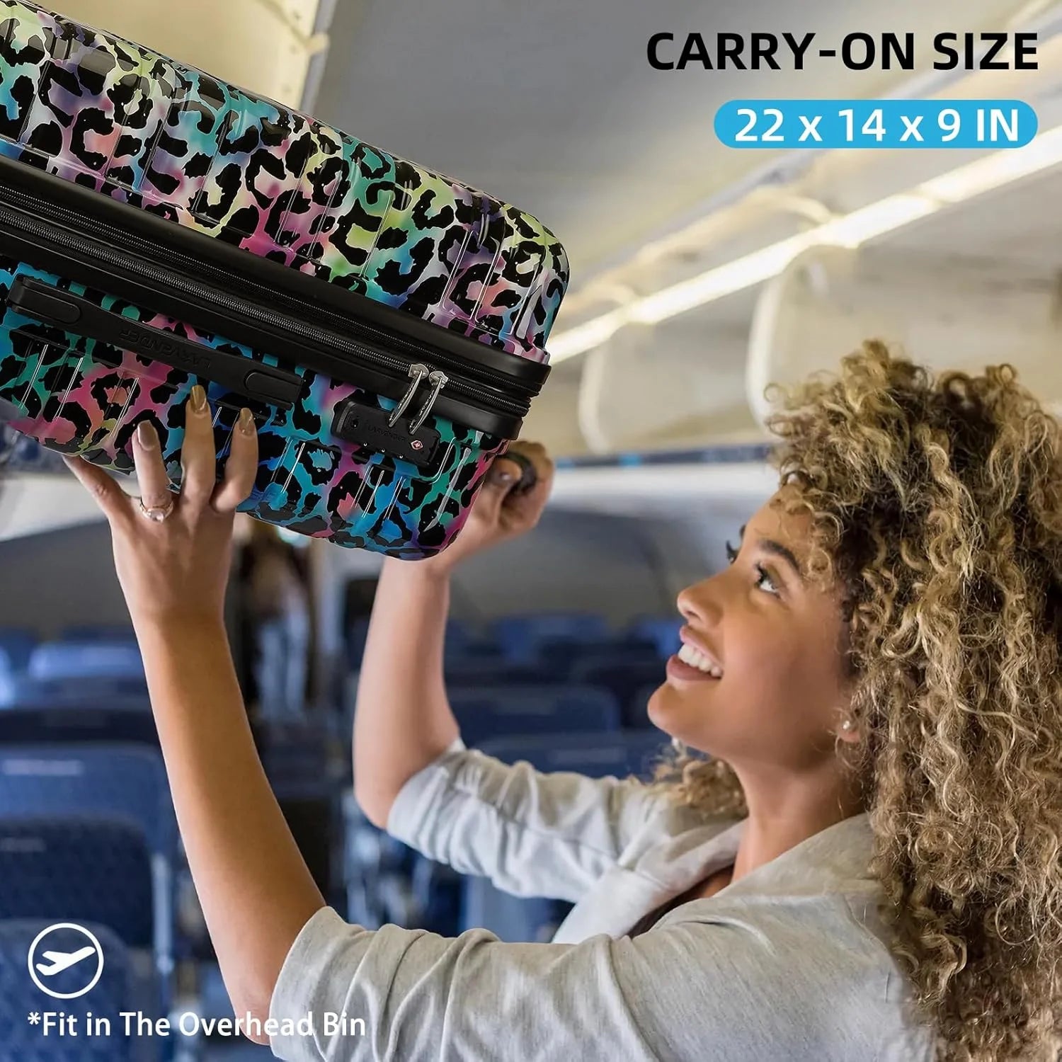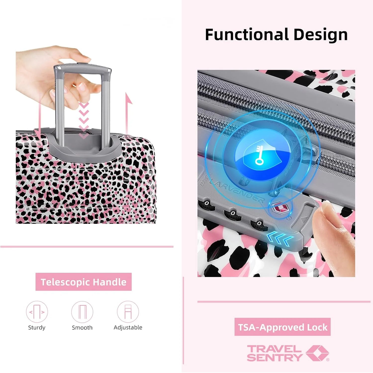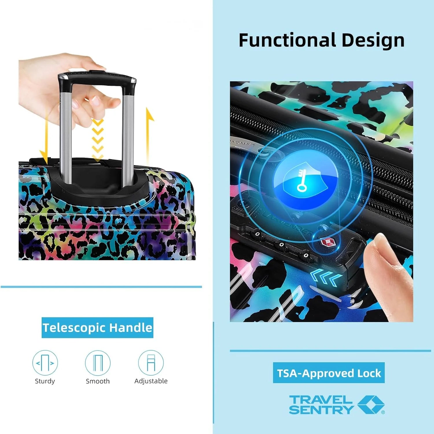 Pack more into your travels with the bright colors luggage set, including the 18"/20" Carry On, 24" Checked, 28" Checked Plus, a travel duffel bag and a toiletry bag.