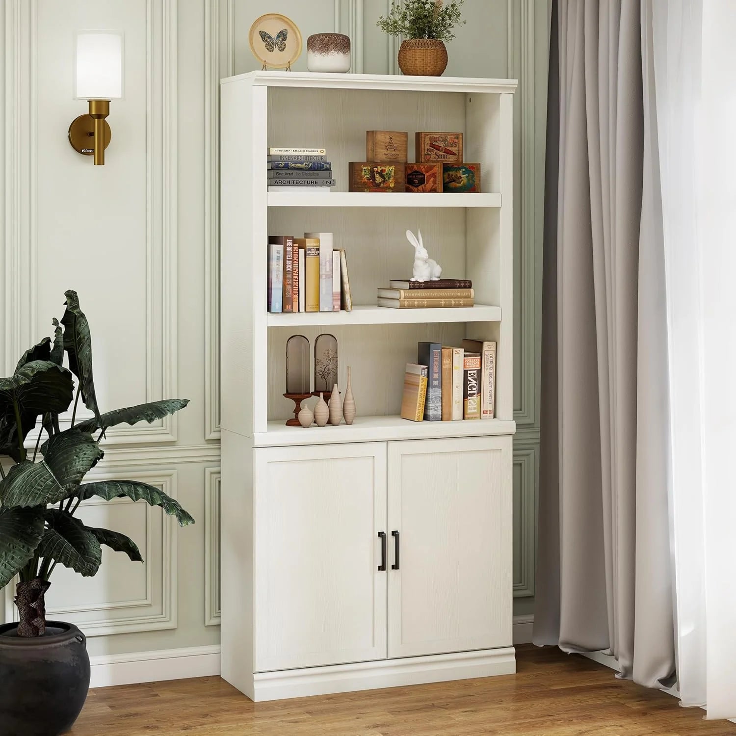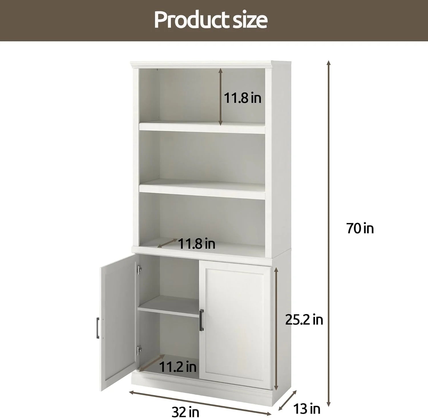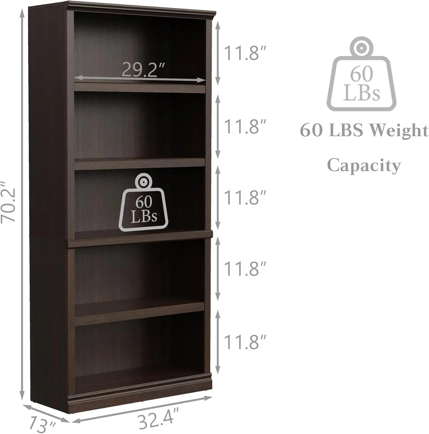 70-Inch Tall White Bookcase 5 Tiers Shelves Open Storage Bookshelf