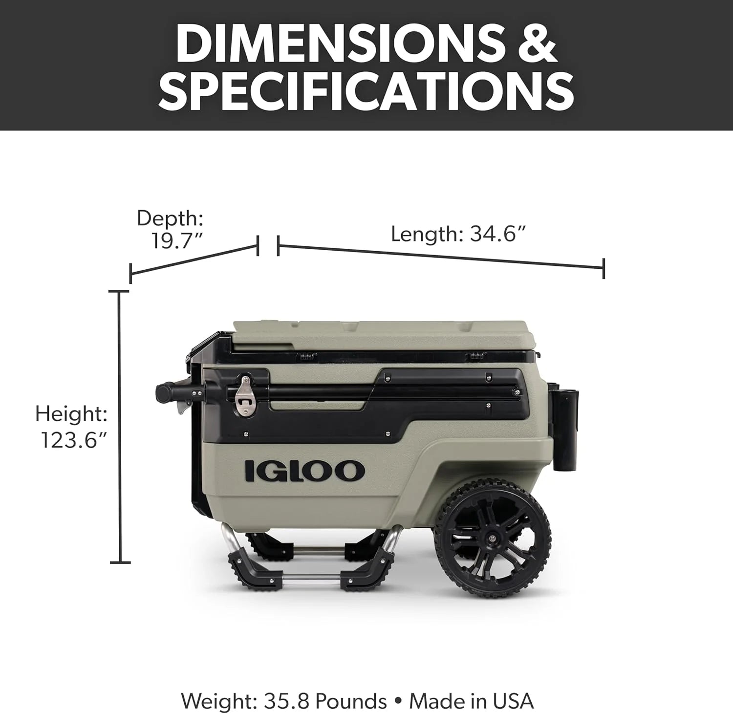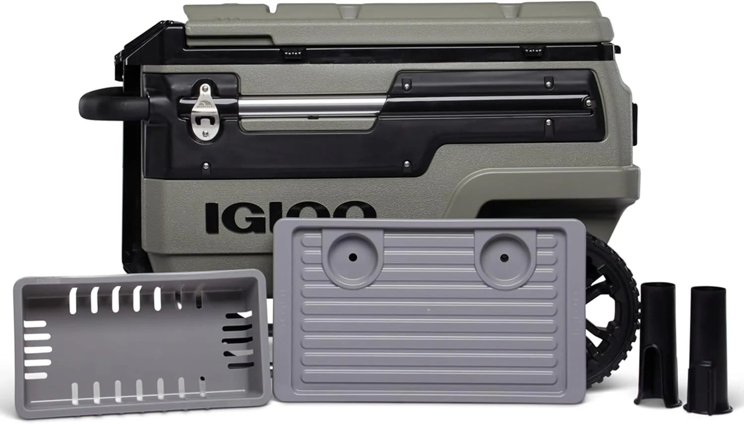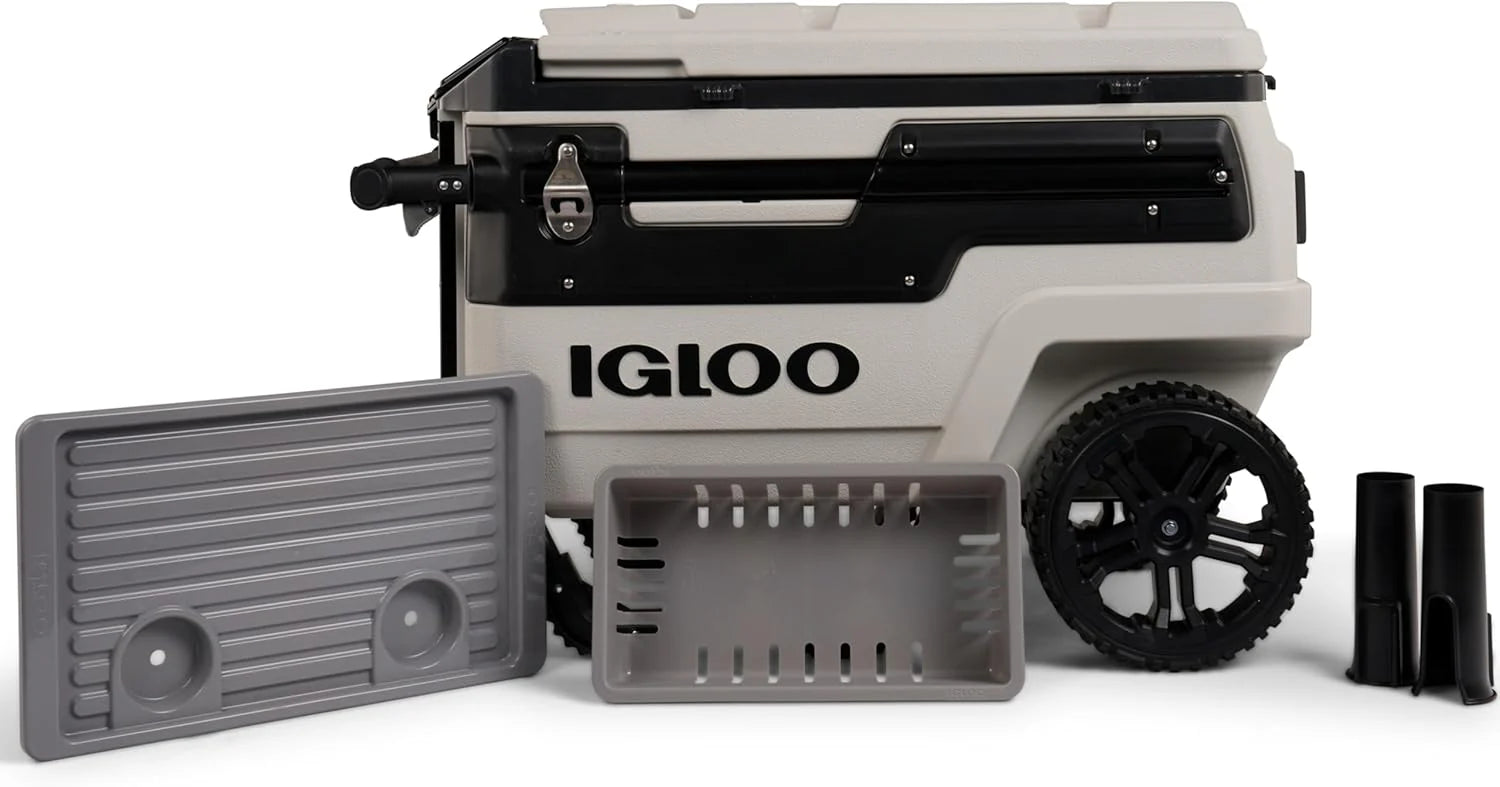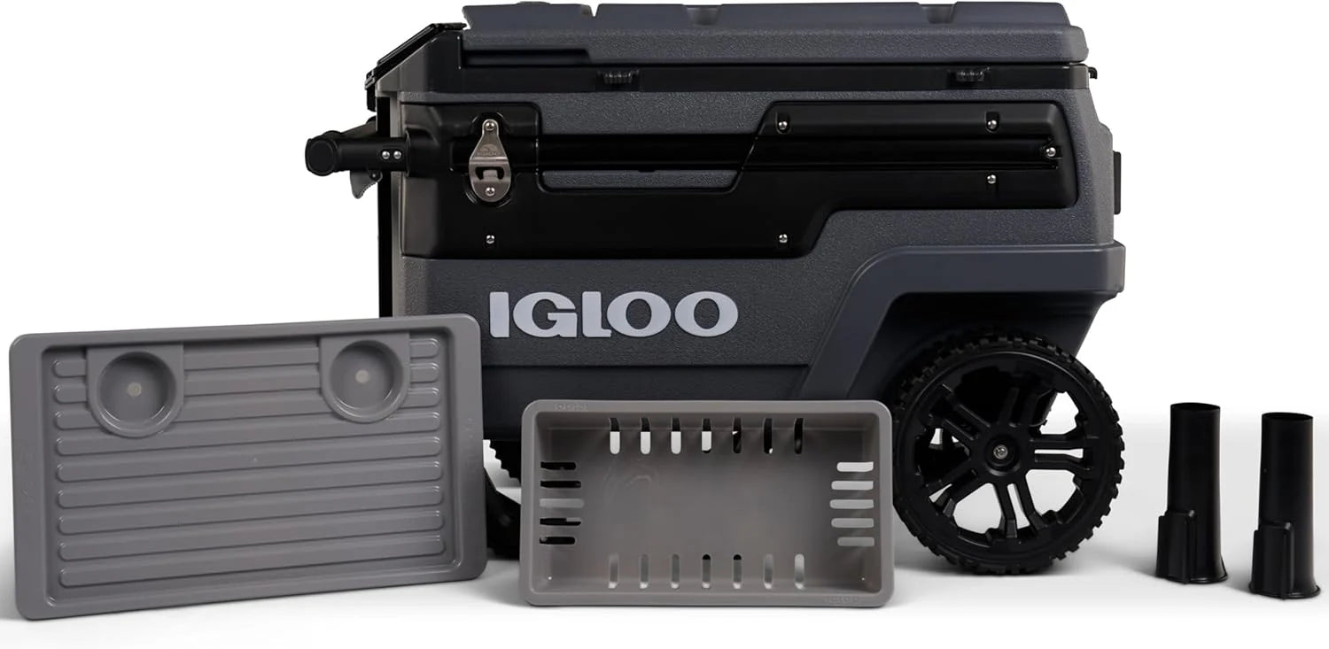 Our rugged Trailmate cooler has oversized, all-terrain wheels and a sturdy telescoping handle, so you can easily and smoothly roll it to your destination.