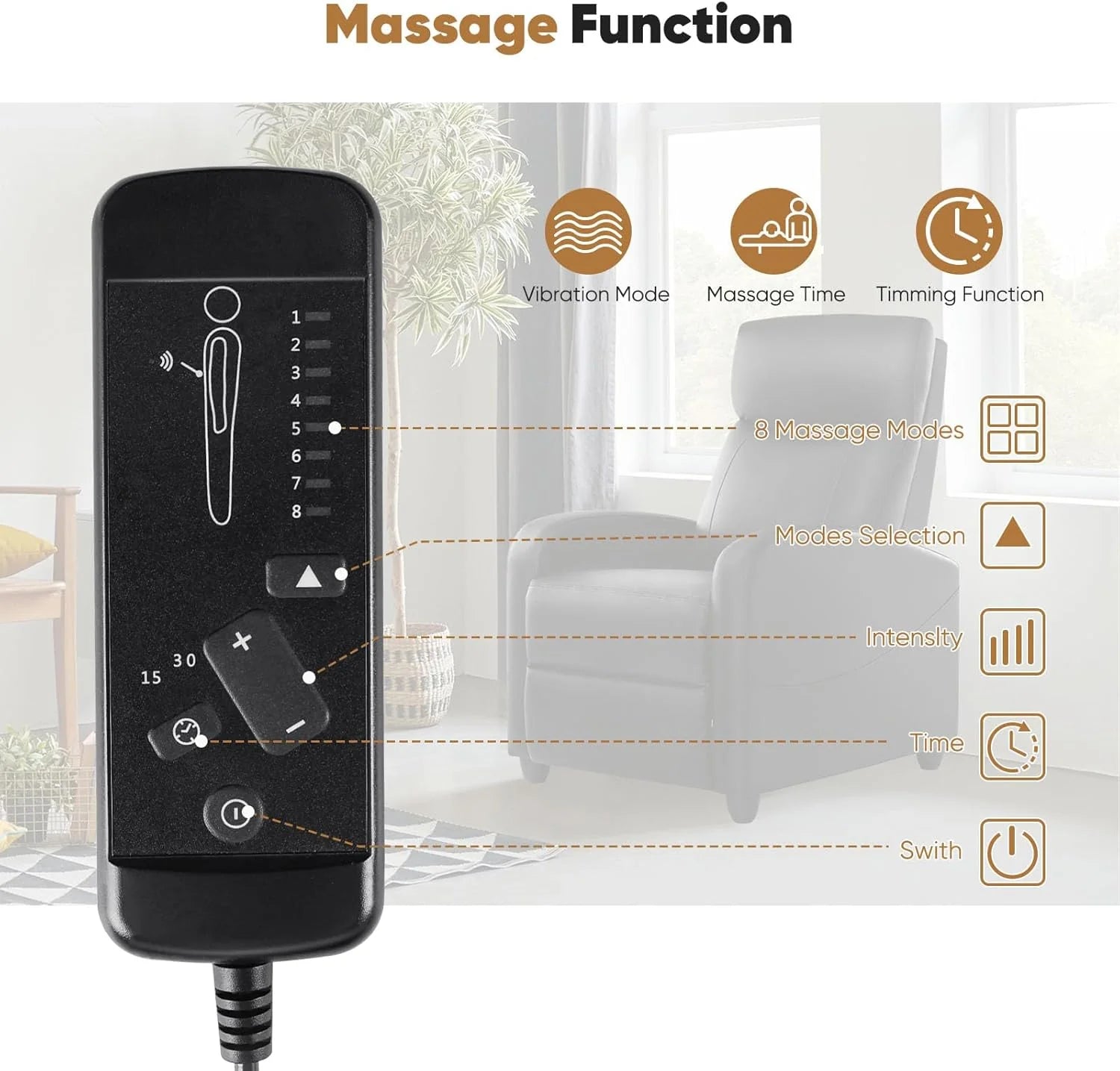 Unlike other massage chairs, our recliner has a back massage function with 8 modes.