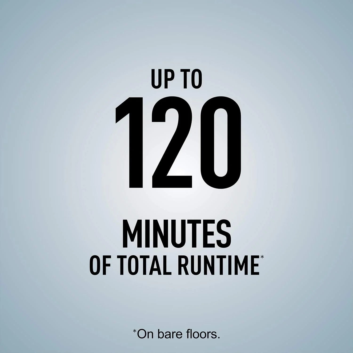 - EXTENDED RUNTIME: Up to 120 minutes of runtime for whole-home cleaning. And with Recharge and Resume, the robot will return to the dock, recharge, and can pick up where it left off.