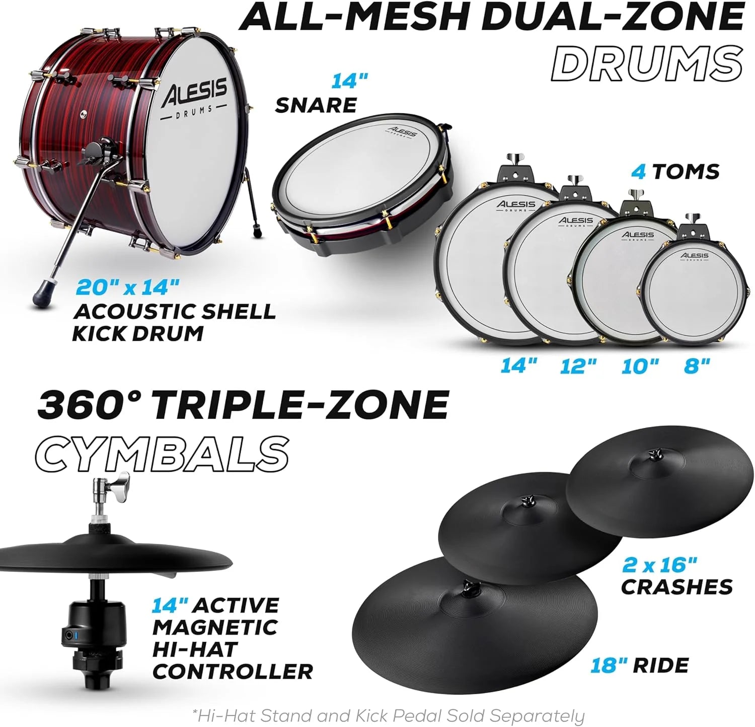 Tension can be adjusted on all six mesh heads so you can set the rebound and expressiveness to your preference - unnatural hotspots are eliminated by Alesis’ patented anti-hotspot sensor design.
