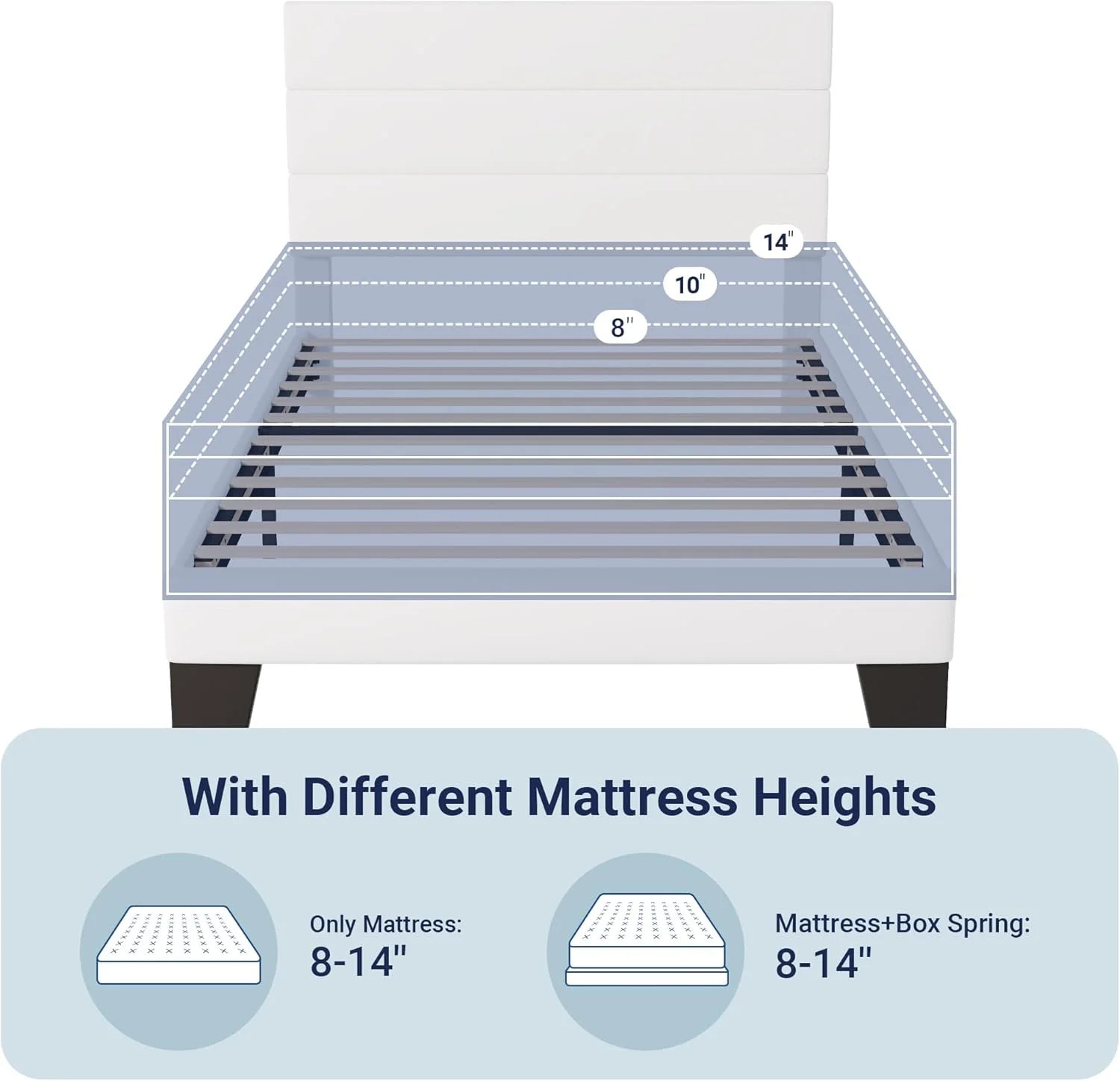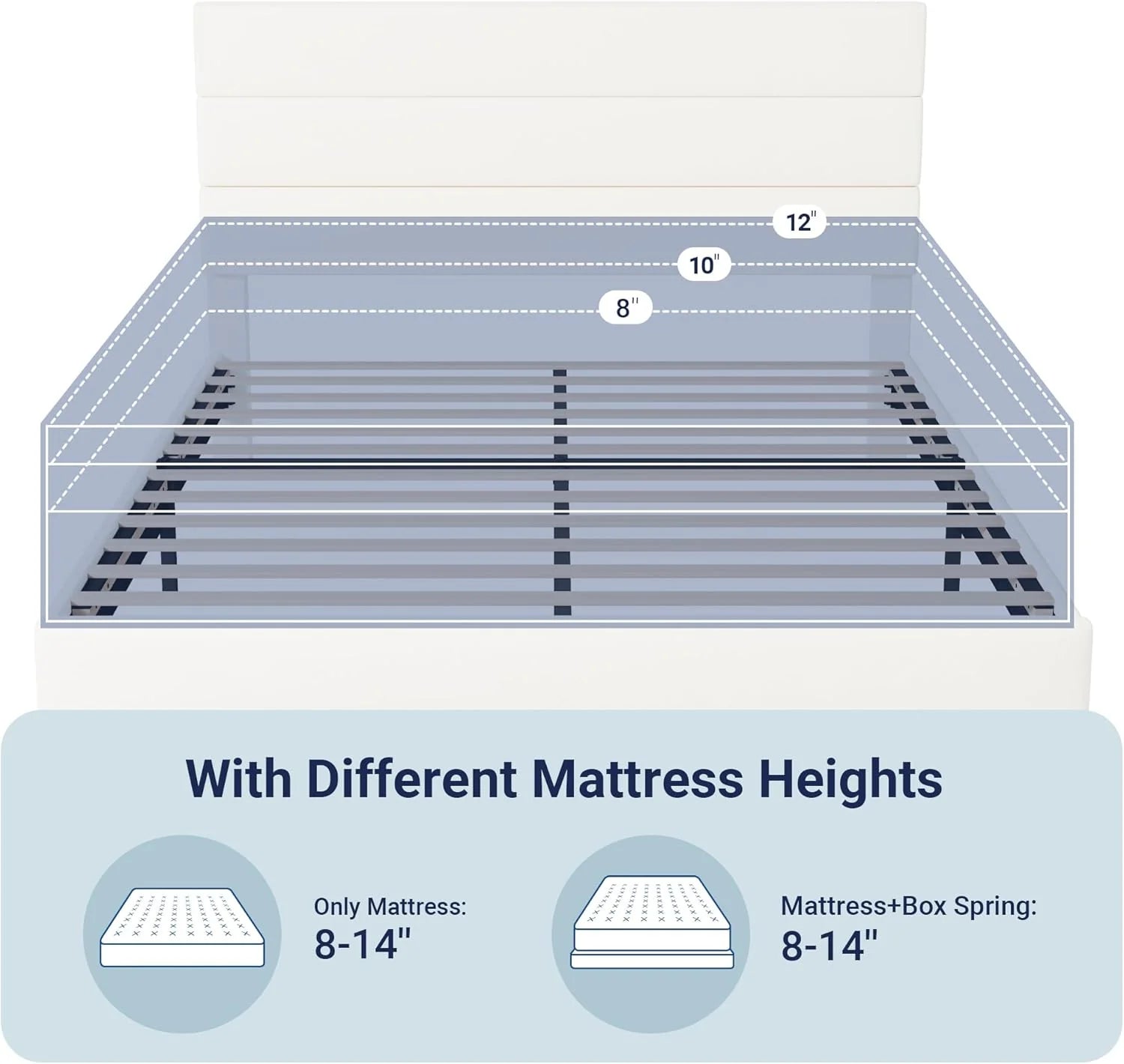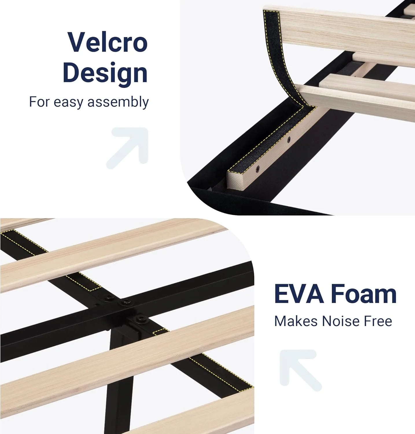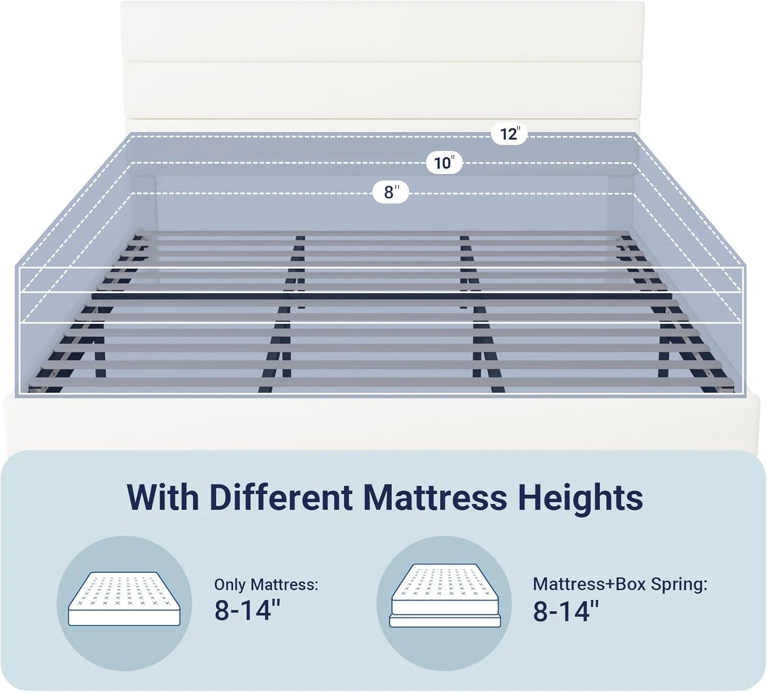 Allewie King size platform bed frame with velvet upholstered headboard and planks