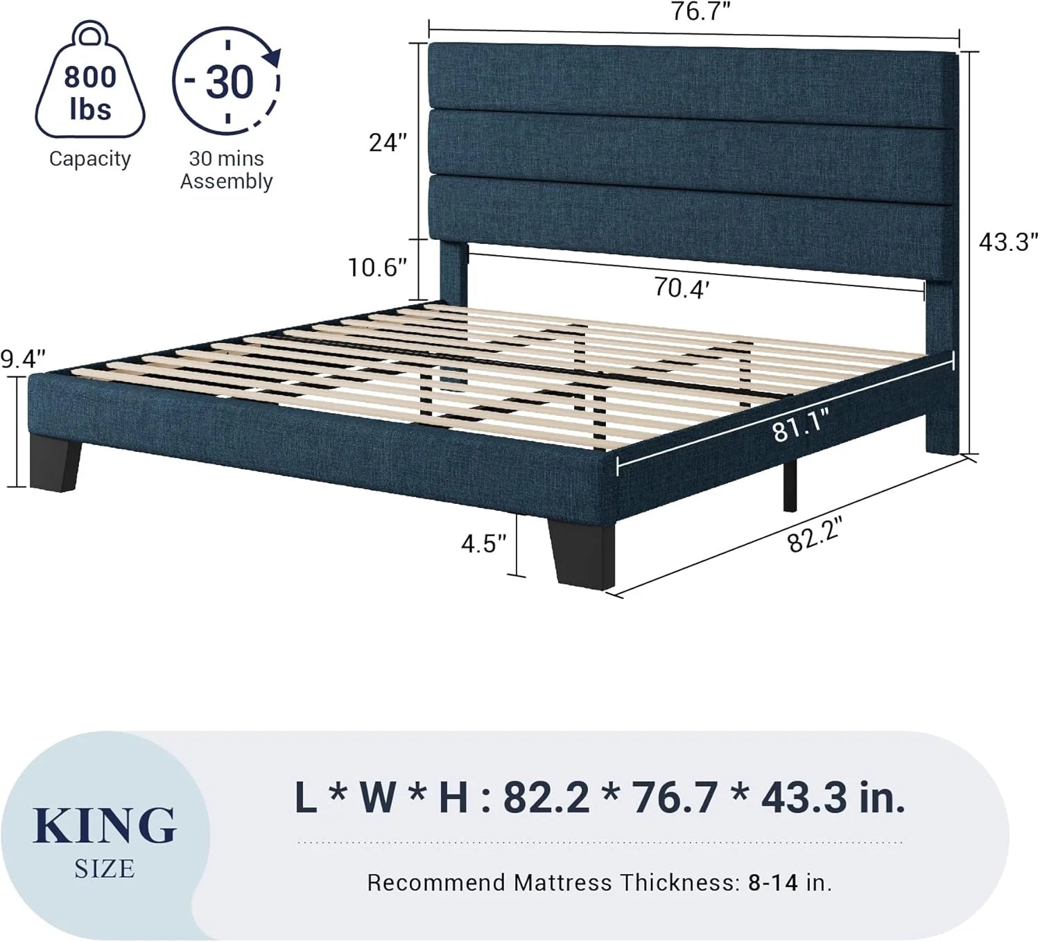 - Quick Assemble: Comes with clear instructions, easy to assemble in about an hour; bed frame fits snugly and holds together tightly; suitable for mattresses 8-15 inches thick