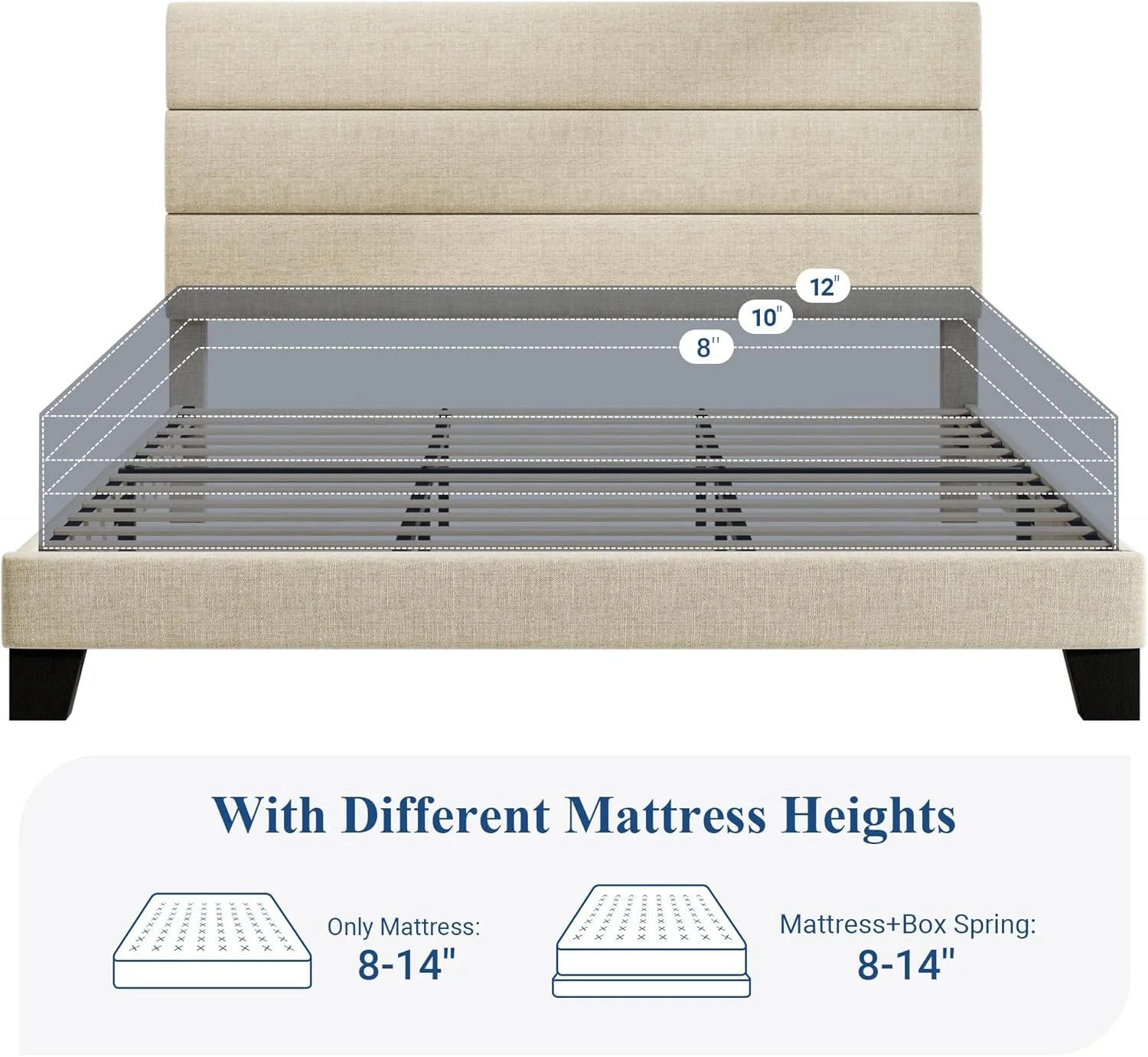 - No Box Spring Needed: Designed with solid wood slats and simple assembly; mattress does not slide; suitable for memory foam or spring mattresses without a box spring