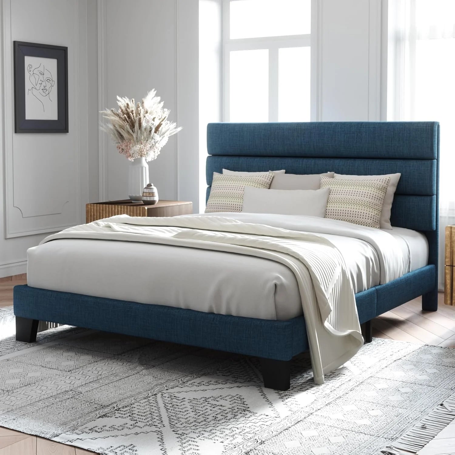 - Minimalist & Noise-Free: Bed frame queen size with a padded upholstered headboard, suitable for various decors; EVA mute bar prevents noise from friction, no squeaking or creaking