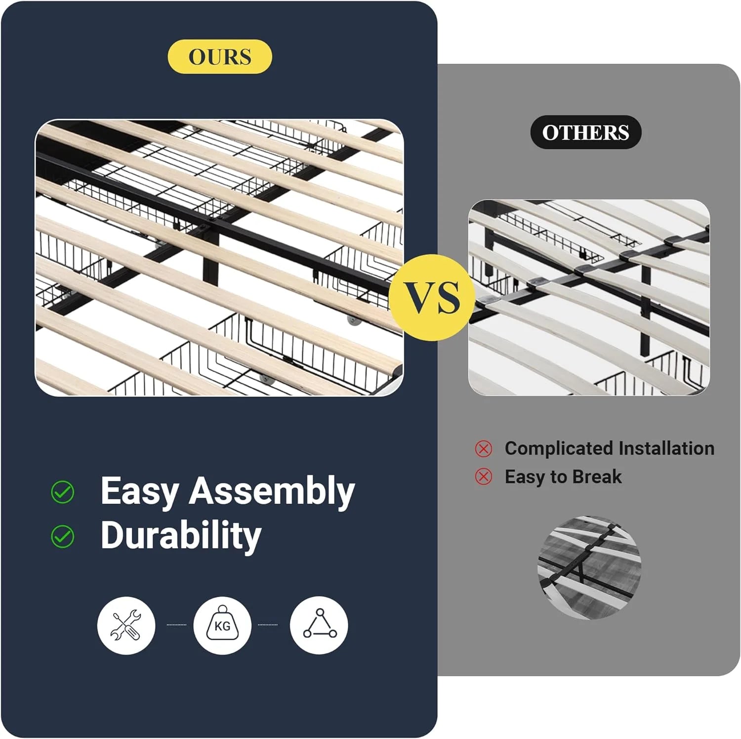 - No Box Spring Needed: Designed with strong wood slats support, this queen bed frame with drawers does not require a box spring or any other additional foundations