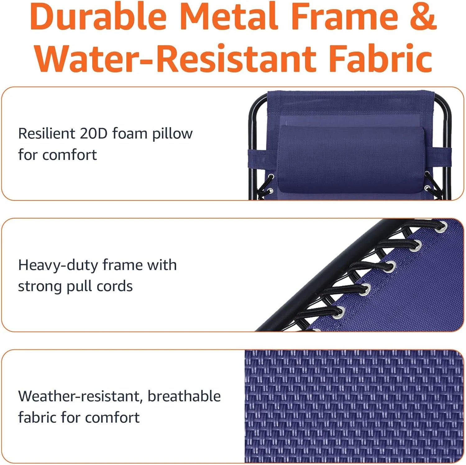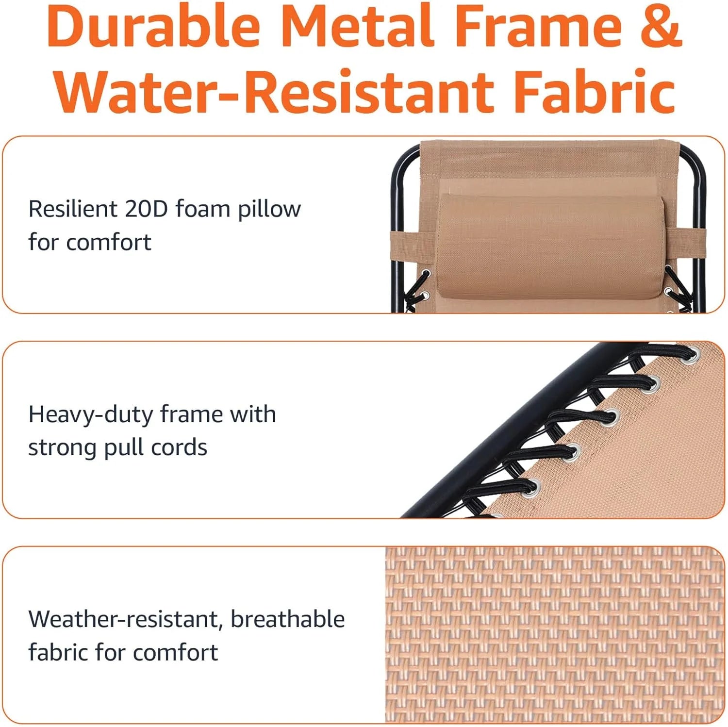Amazon Basics Textilene Outdoor Adjustable Zero Gravity Folding Reclining Lounge Chair with Side table and Pillow - Pack of 2, Tan