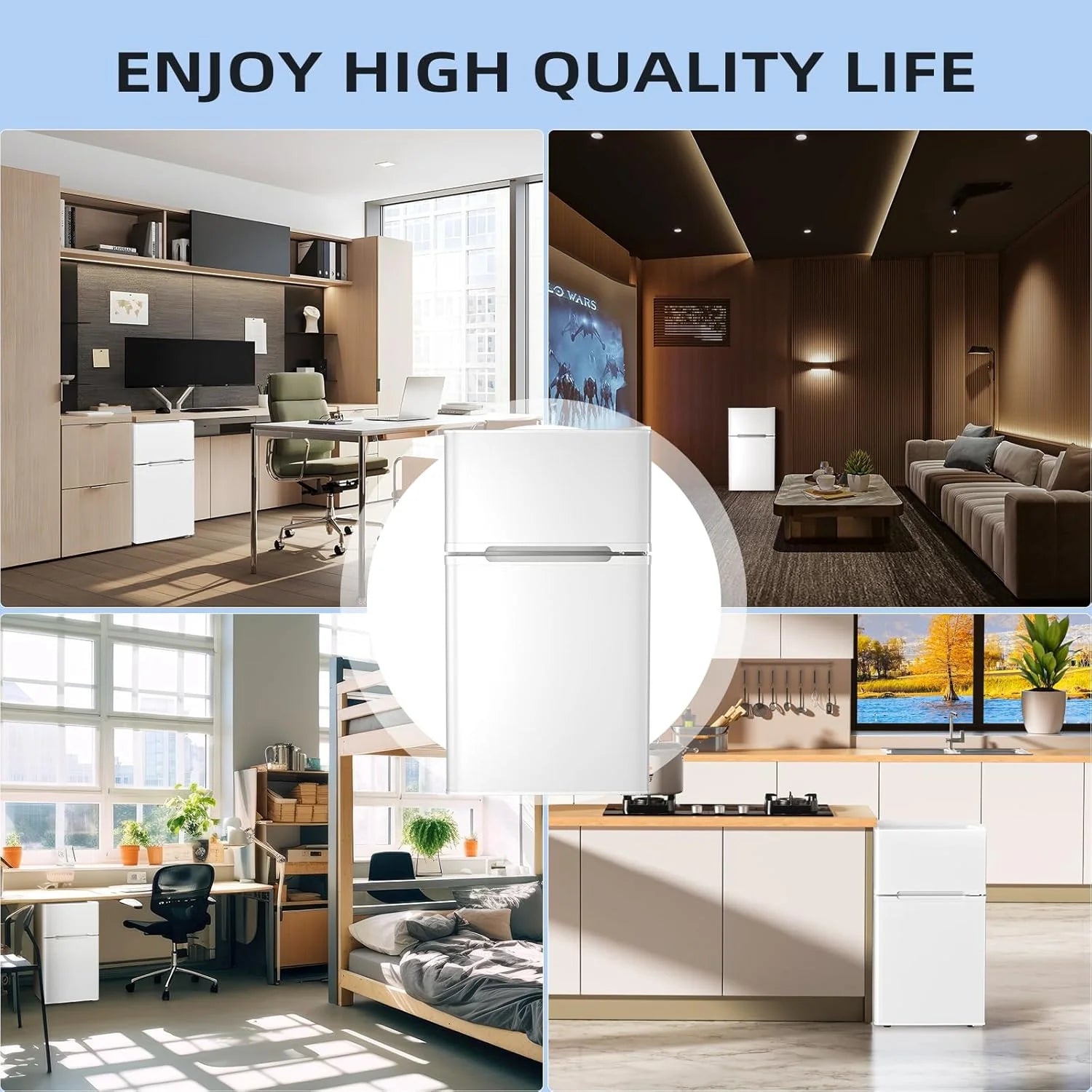 - Multi-Function Storage - compact mini refrigerator combines freezing and refrigerator functions.Compared with single-door small refrigerators, dual-temperature mini fridge have independent refrigerator and freezer areas, which can better classify and store different types of food