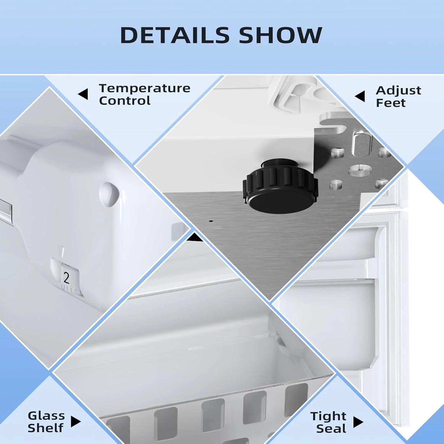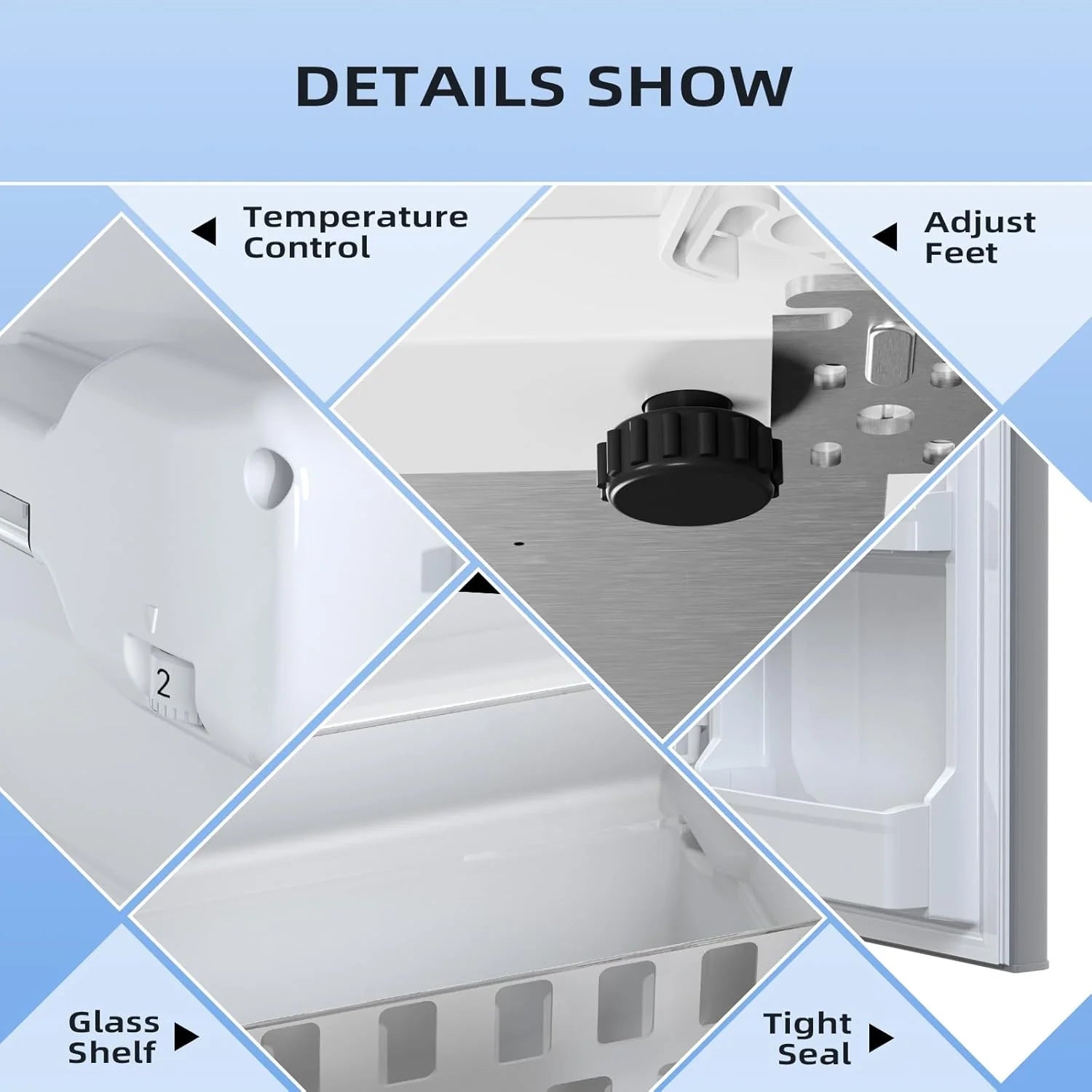 - Quiet Operation - The low-noise fridge operates at 38dB. Enjoy a peaceful space with the mini fridge's whisper-quiet operation. It's engineered to lower noise, making it ideal for use in bedrooms, study areas, or any quiet setting where you need a silent appliance
