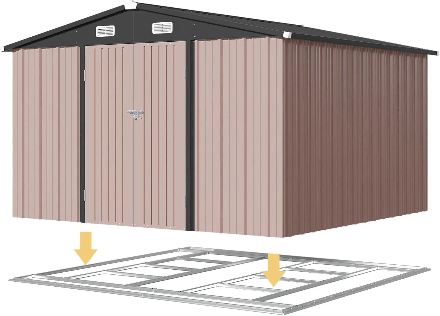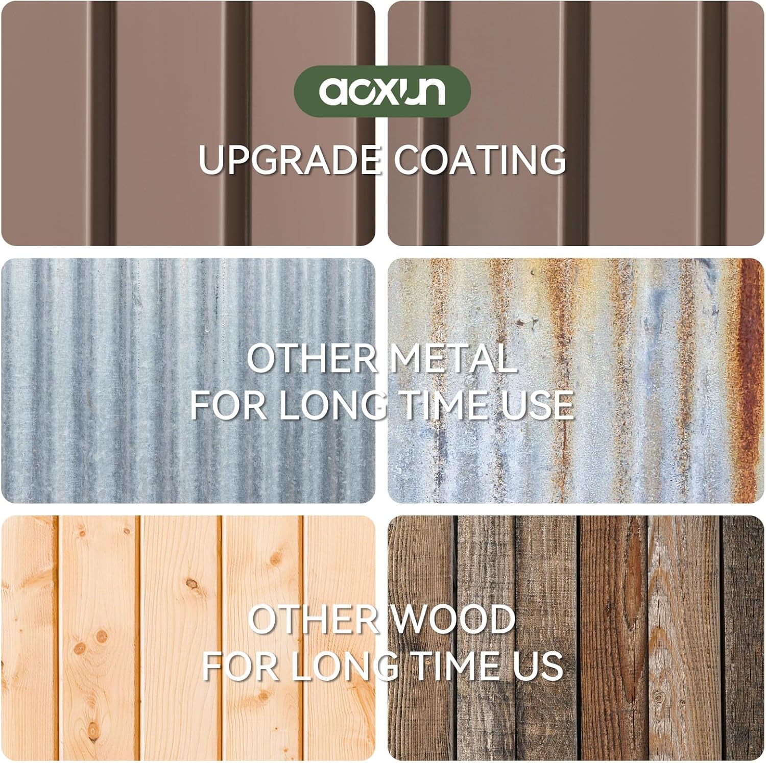Aoxun 12x10 FT Shed Metal Outdoor Waterproof Storage Shed Steel Utility Garden Tool Shed with Door & Lock Outdoor Storage for Garden Patio Lawn Poolside, Brown