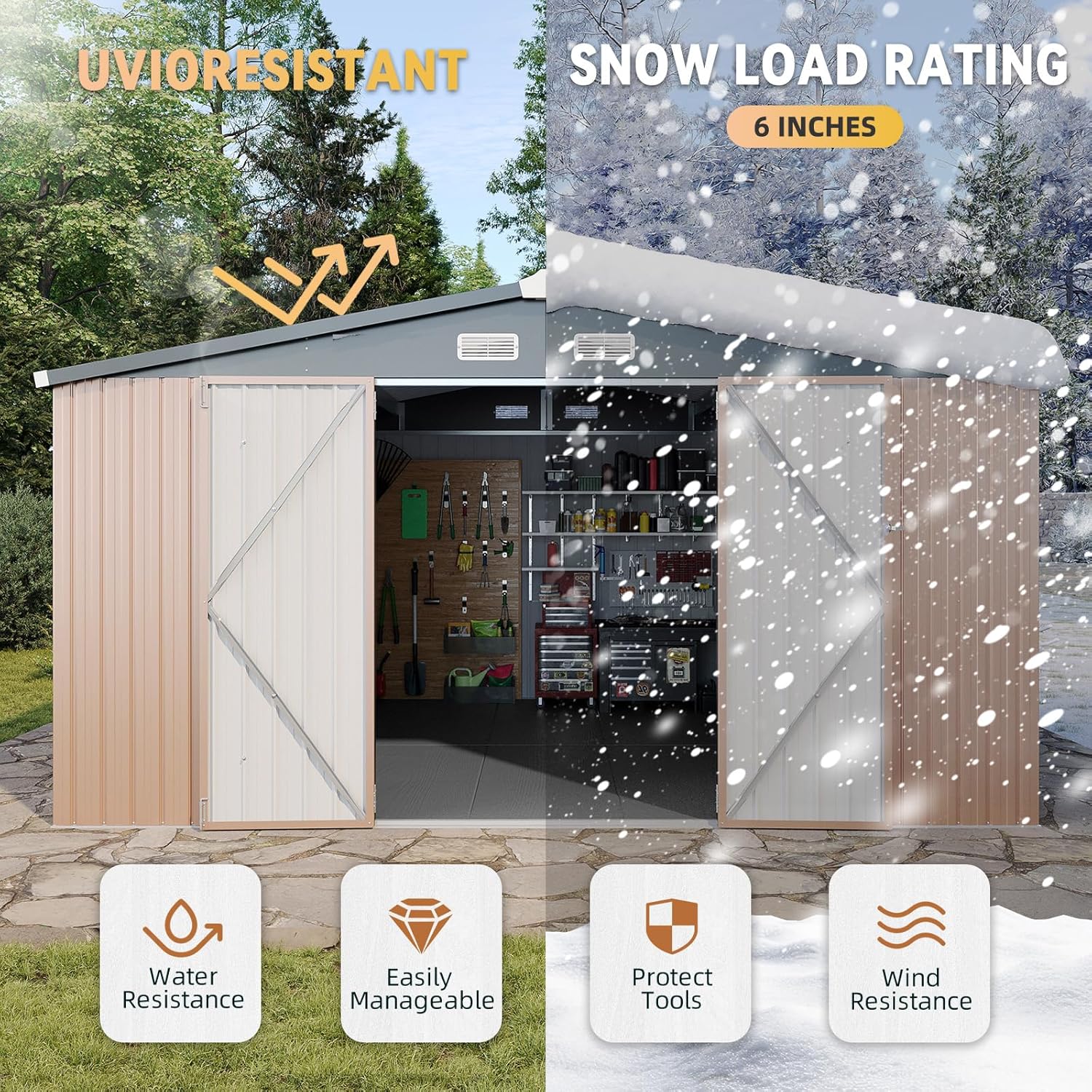 - Versatile Outdoor Storage Solution: The angled roof design not only increases its snow carrying capacity, but also greatly increases the capacity of the interior space. This provides a variety of storage options. Ideal as a bike shed, generator storage unit, or garden tool organizer. Fits seamlessly in backyards, patios, or driveways.