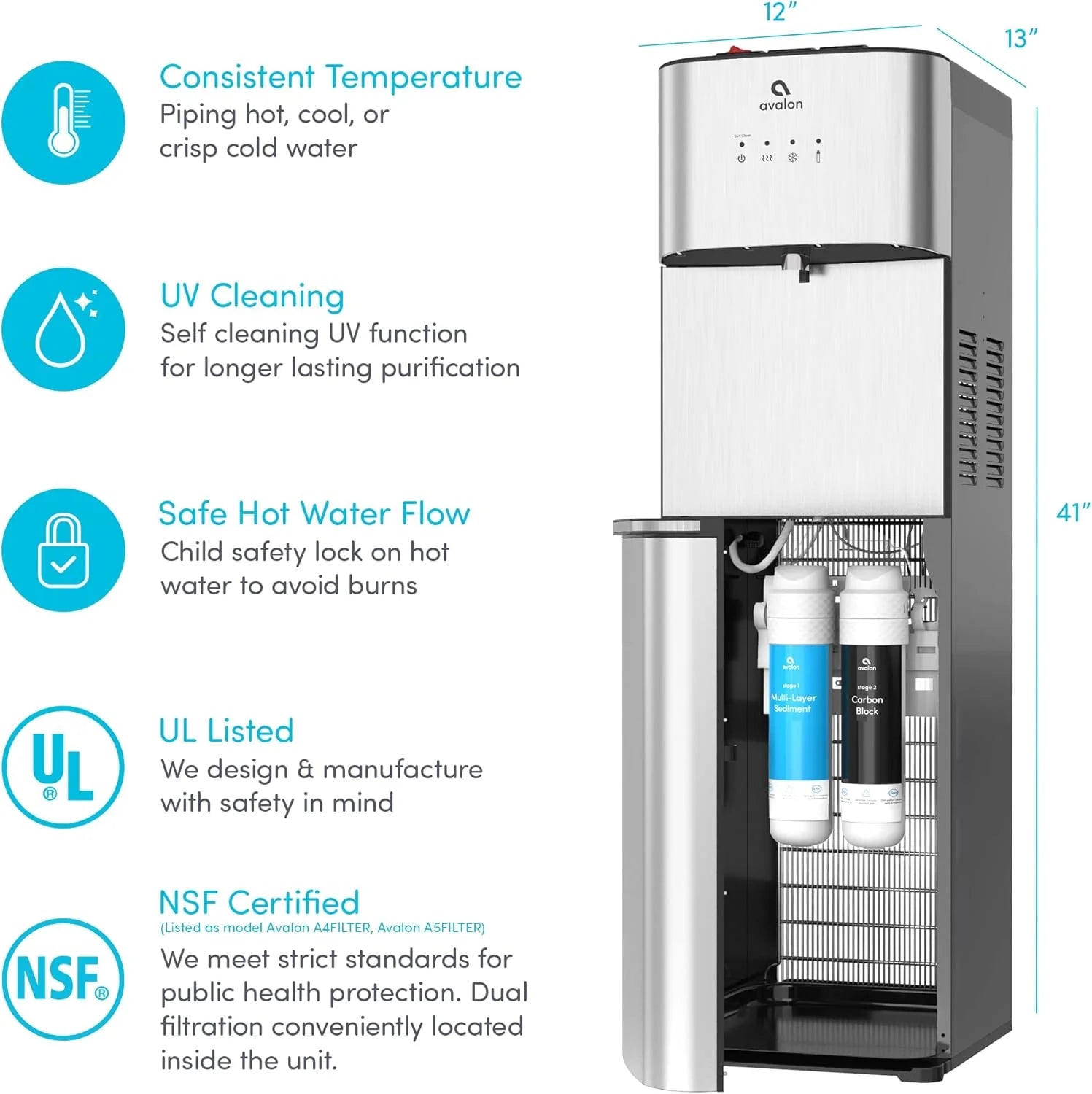 Avalon Bottom Loading Water Cooler Water Dispenser with BioGuard- 3 Temperature Settings - Hot, Cold & Room Water, Durable Stainless Steel Construction, Anti-Microbial Coating- UL Listed