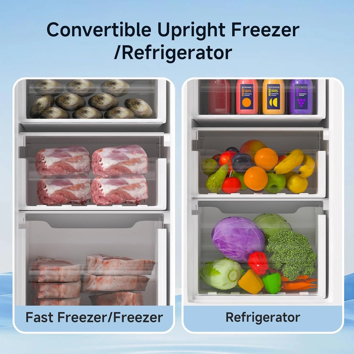 - Convertible Freezer/Refrigerator:This Bangson Upright Freezer can easily be changed from an upright freezer to a no-freezer refrigerator and then back to an upright freezer. Temperature range: Freezer: -7.6(℉)-6.8(℉), Refrigerator: 38(℉)-47(℉).