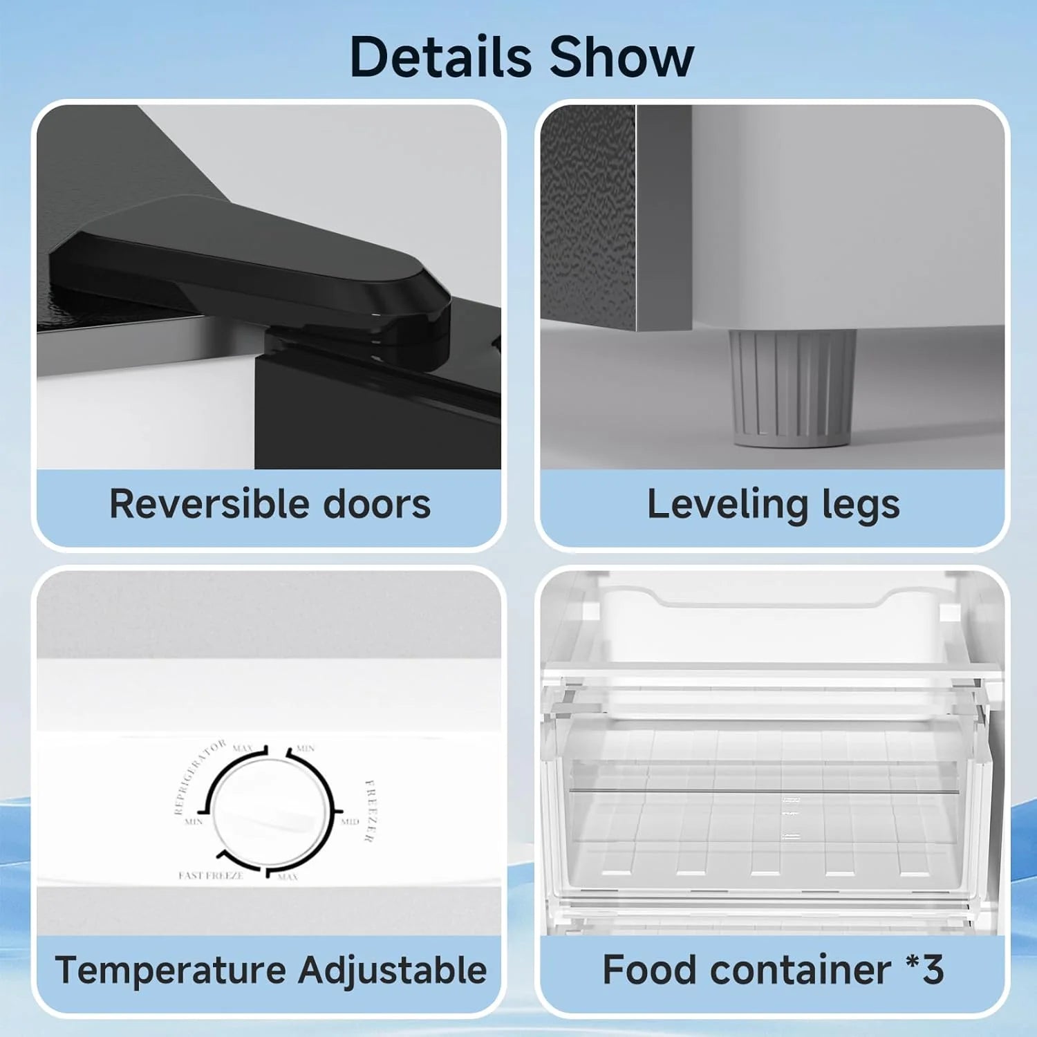 - Enhanced Details:BANGSON's compact refrigerator comes with a reversible door to suit your preferences. Leveling feet on the bottom allow for stable placement on uneven floors. The built-in handle not only makes it easy to open the freezer door, but it also makes the freezer cleaner and more aesthetically pleasing.