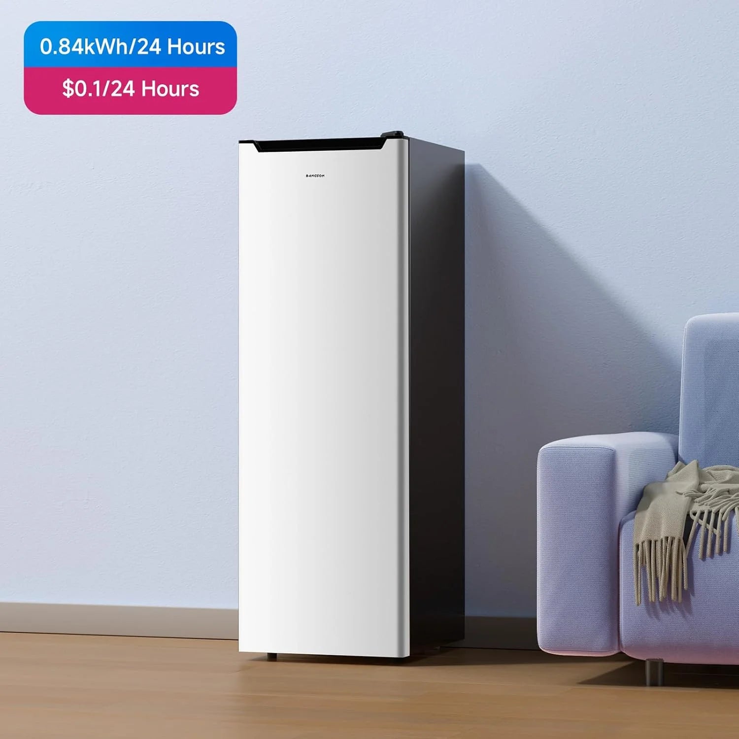 - Freezer Size:The Bangson 7 cu. ft. Upright Freezer provides ample storage space for fruits/vegetables/seafood/ice cream so you can always enjoy fresh food. You can remove the crisper depending on the food placement. Dimensions: 21.5 inches L, 23.3 inches D, and 56.0 inches H.