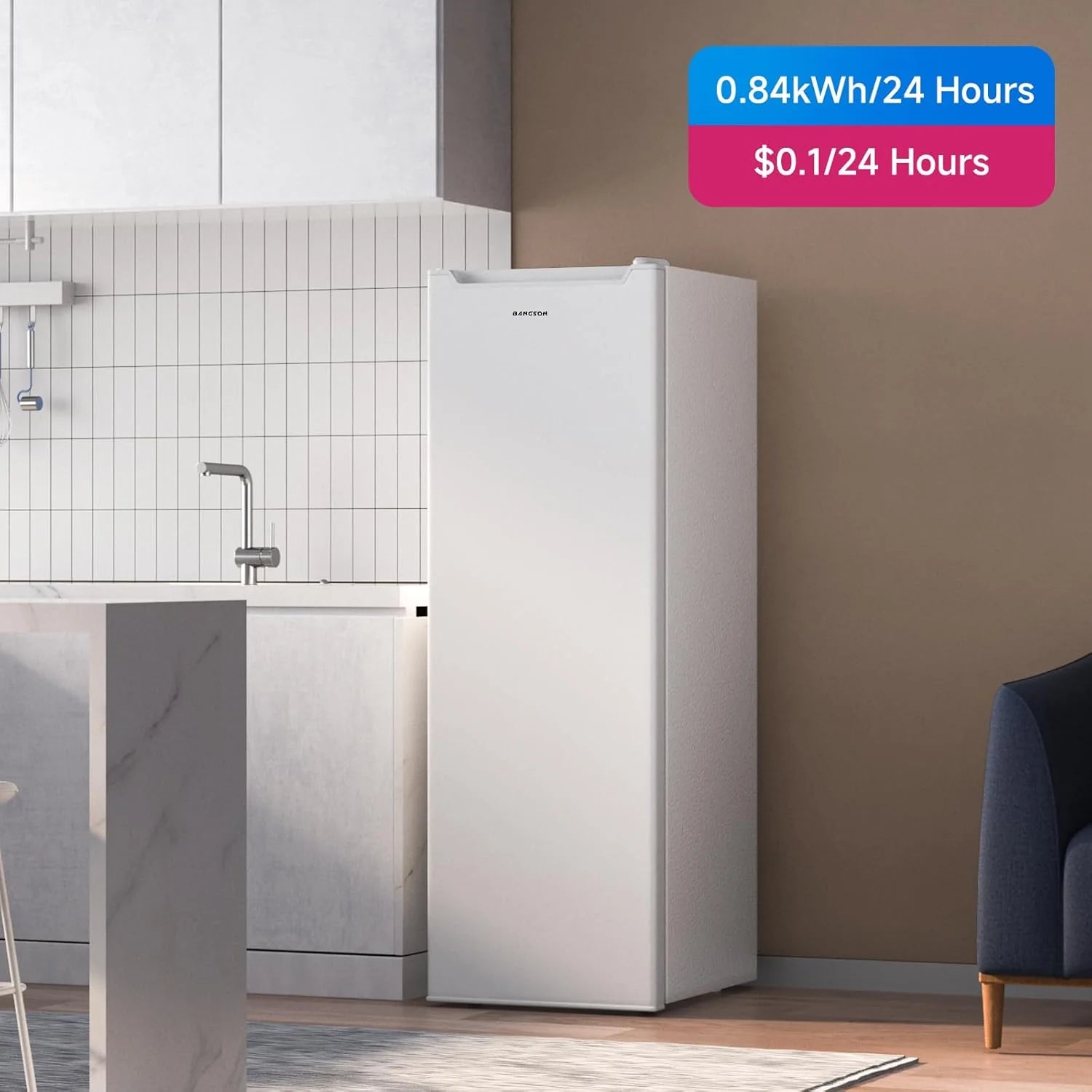 BANGSON Upright Freezer, 7.0 Cu.ft Stand Up Freezer, Convertible Upright Freezer/Refrigerator, Single Door for Kitchen,Garage, Office, Apartment, Silver
