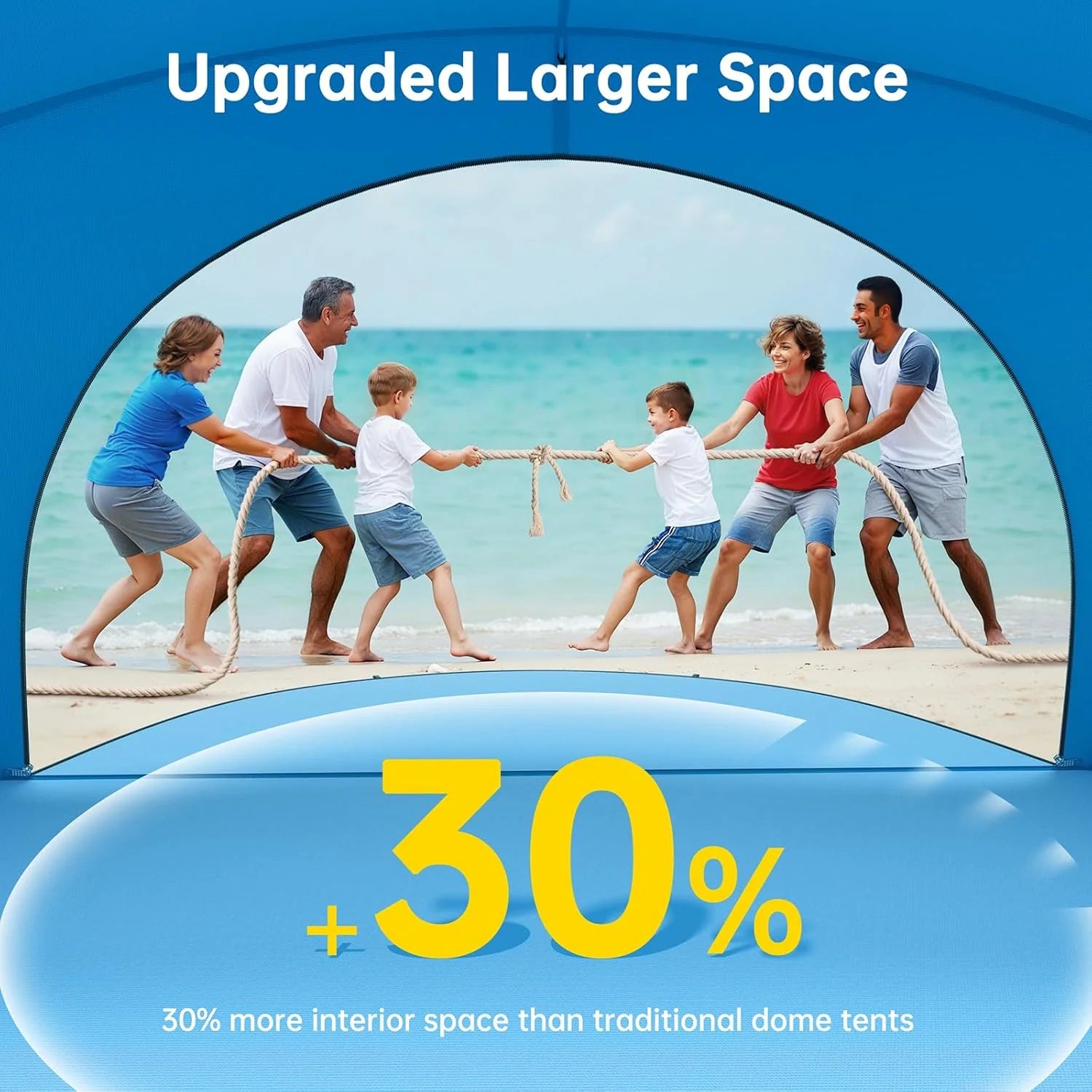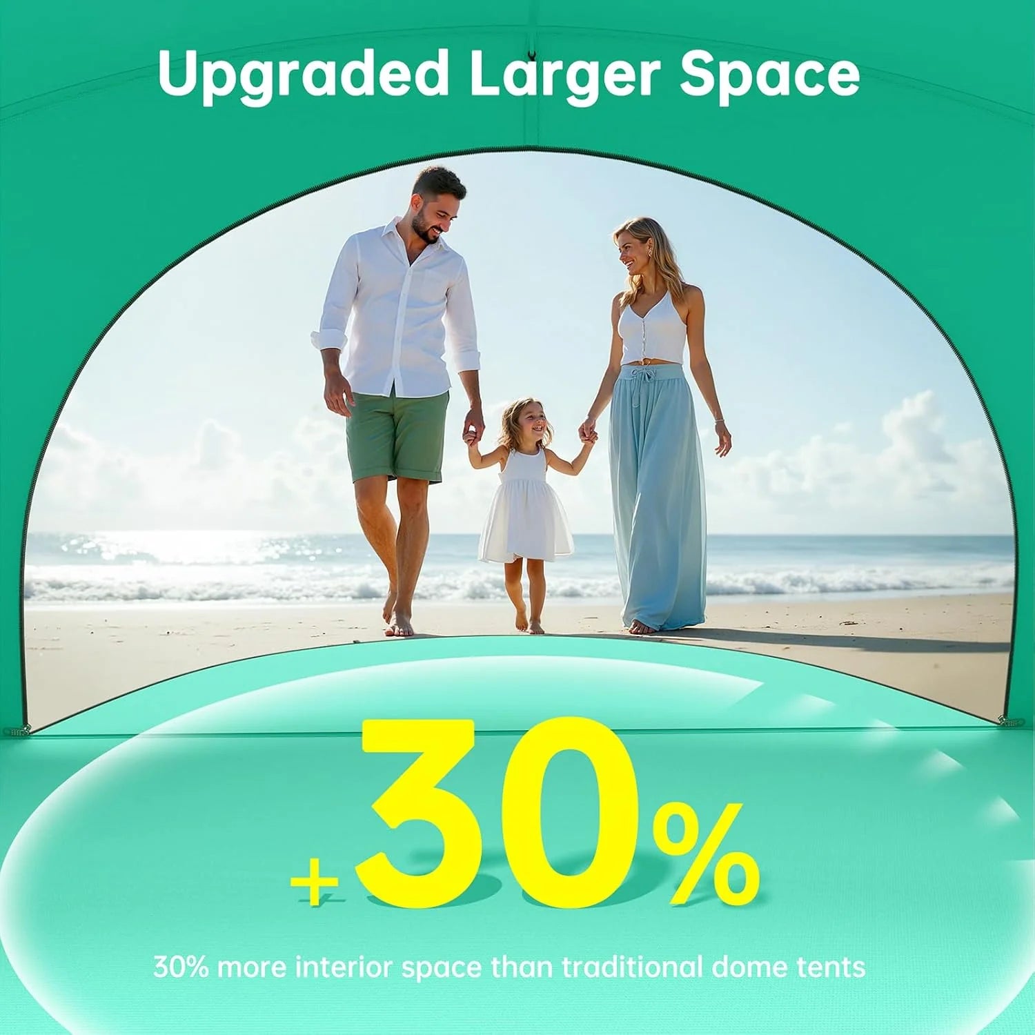 - Sun Protection & Water Resistance: Made of superior silver-coated fabric, this tent for beach offers UPF50+ sun protection, effectively blocking heat and 98% of harmful UV rays, keeping you safe from intense sunlight. The fabric boasts excellent waterproof performance, allowing you to enjoy a cool and dry leisure space during outdoor activities.