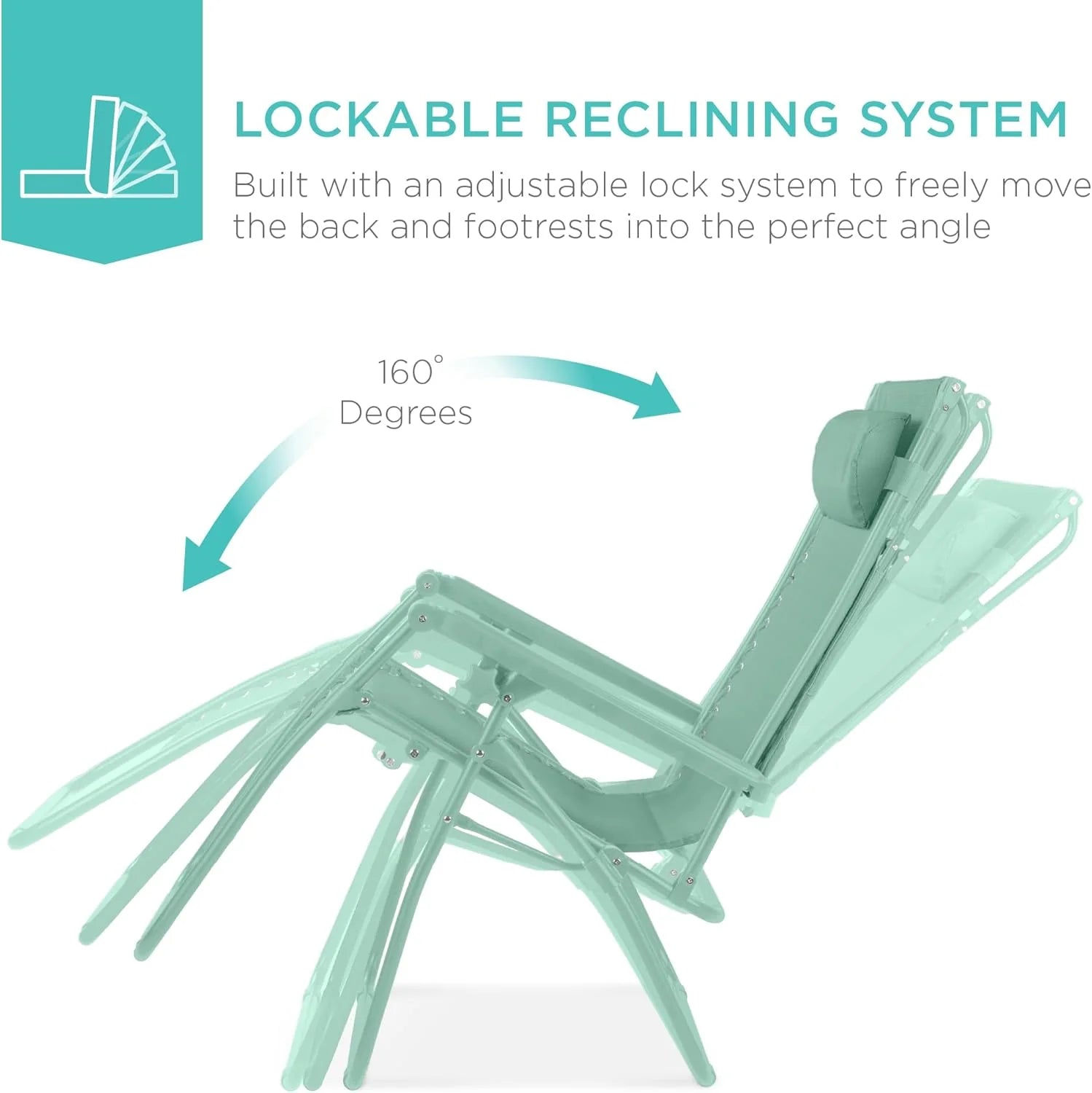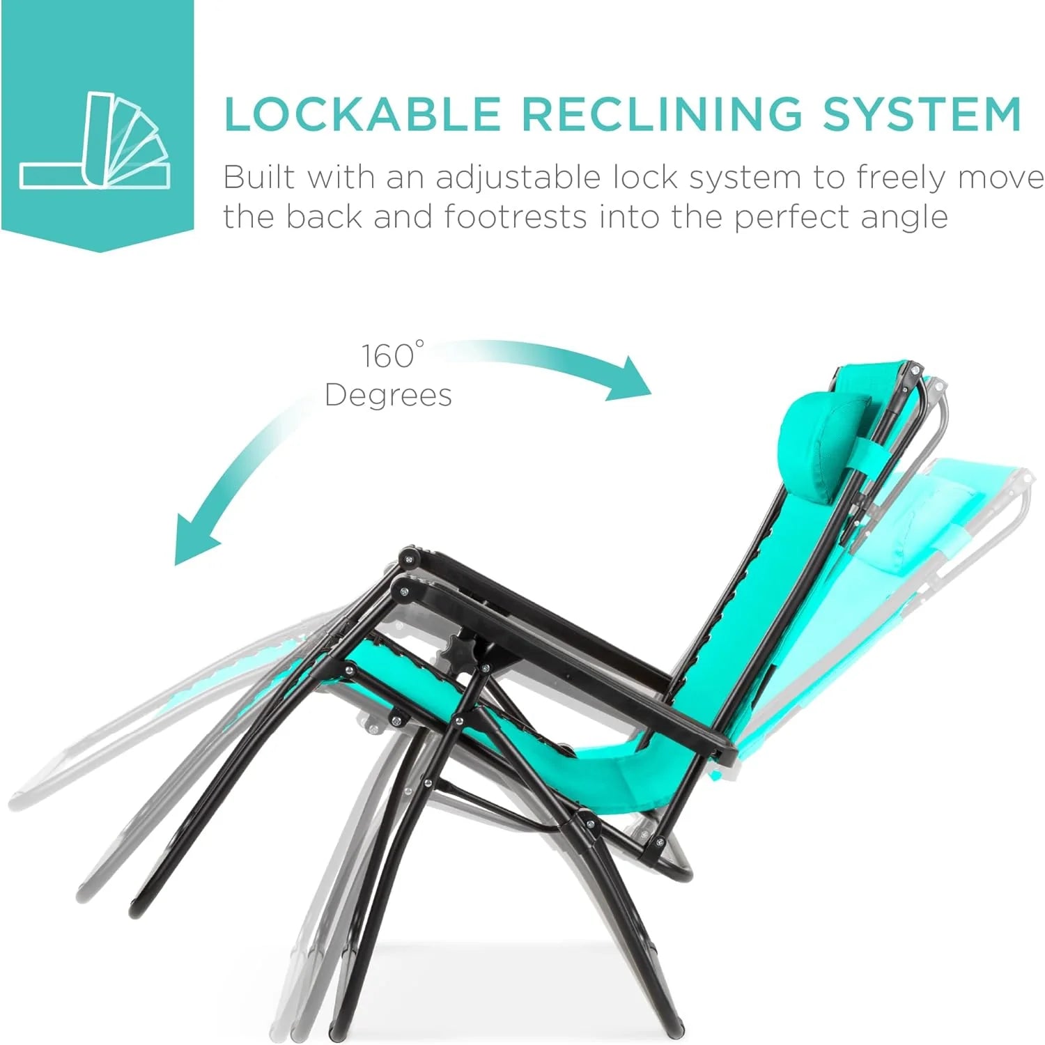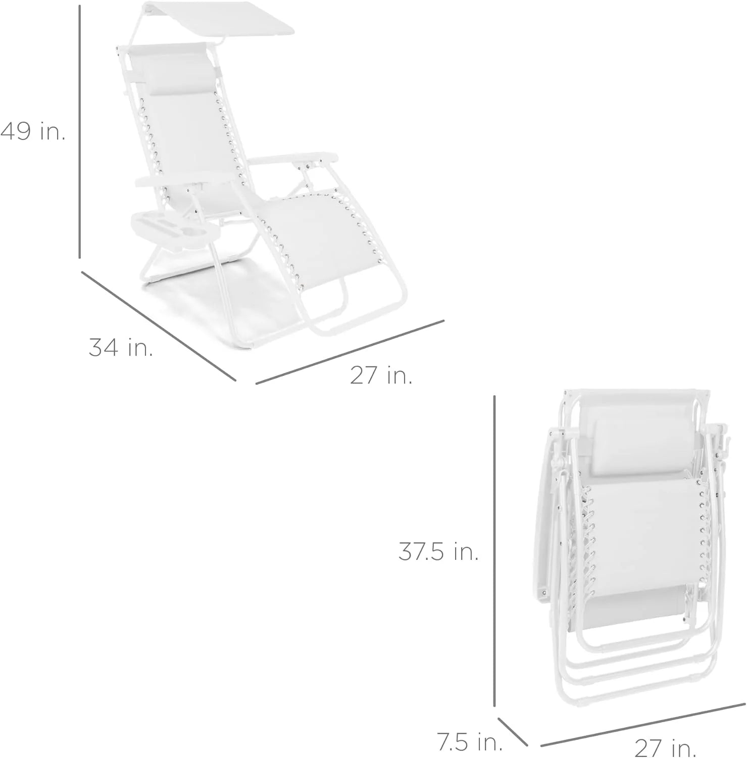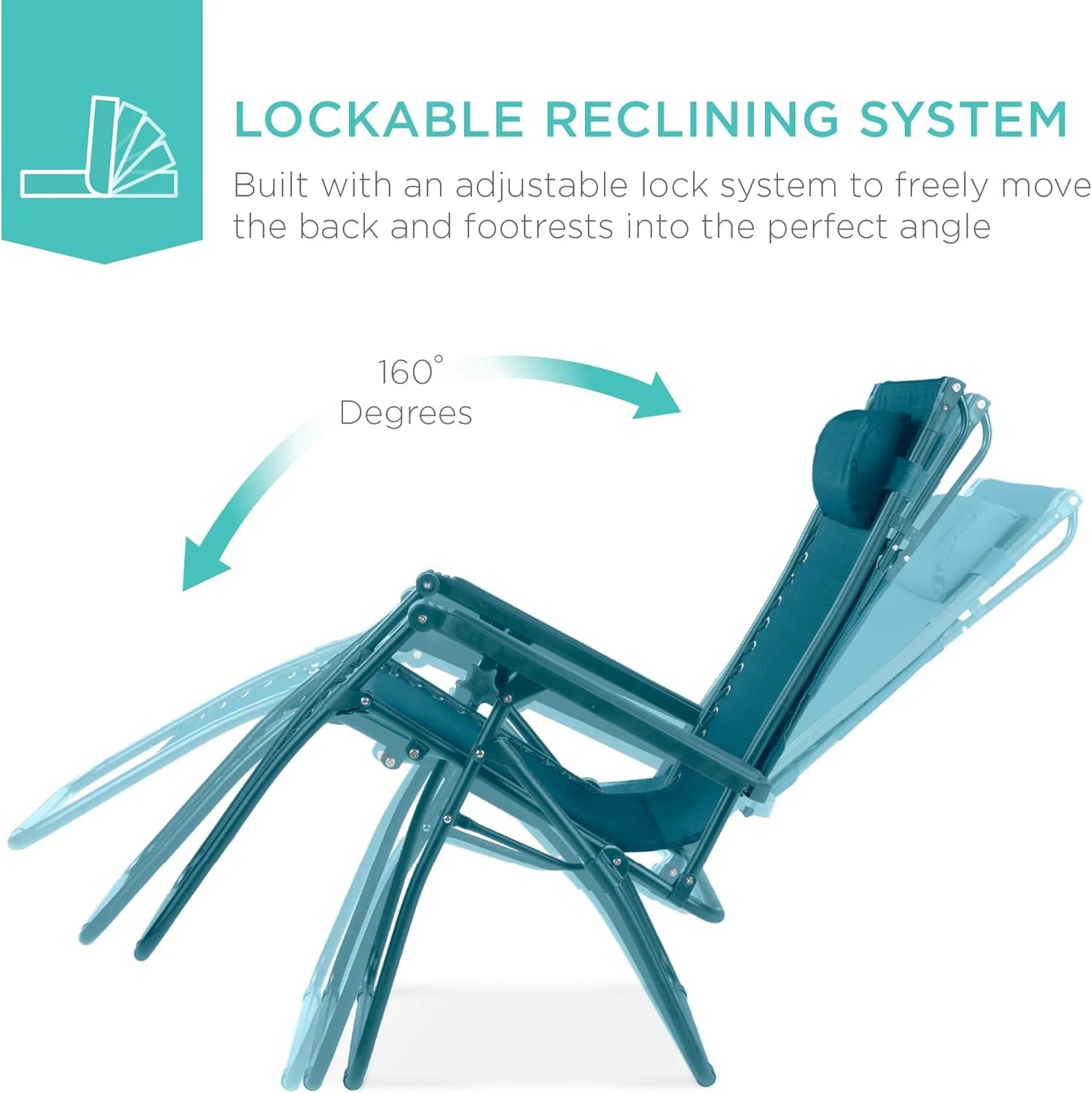 Best Choice Products Folding Zero Gravity Outdoor Recliner Patio Lounge Chair w/Adjustable Canopy Shade, Headrest, Side Accessory Tray, Textilene Mesh - Peacock Blue