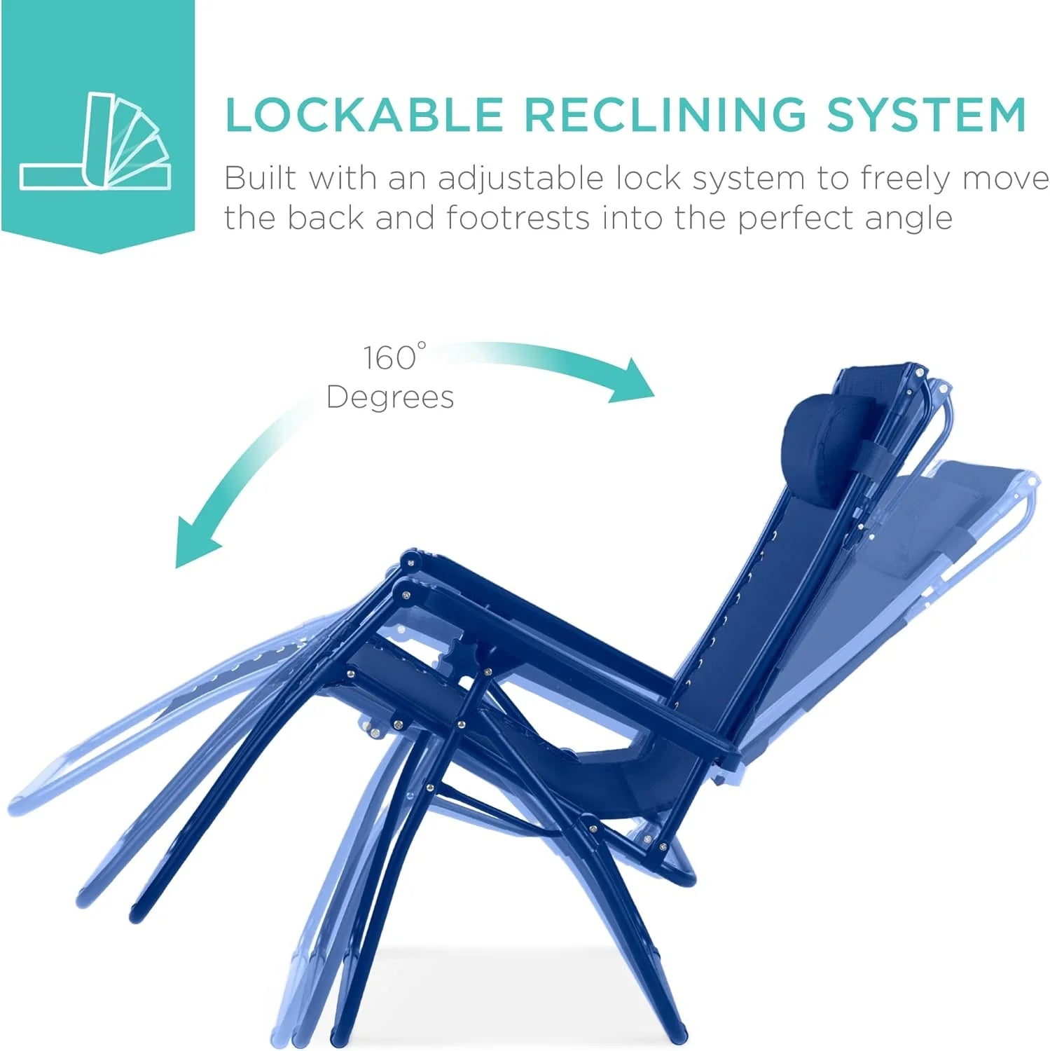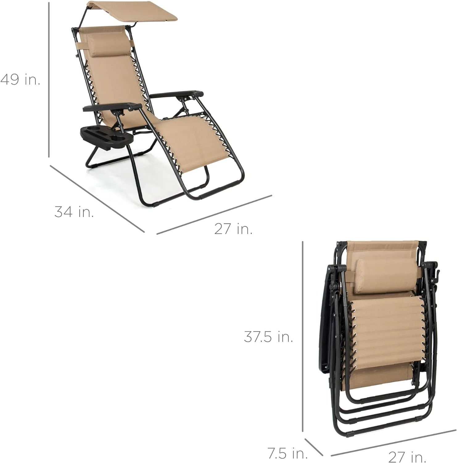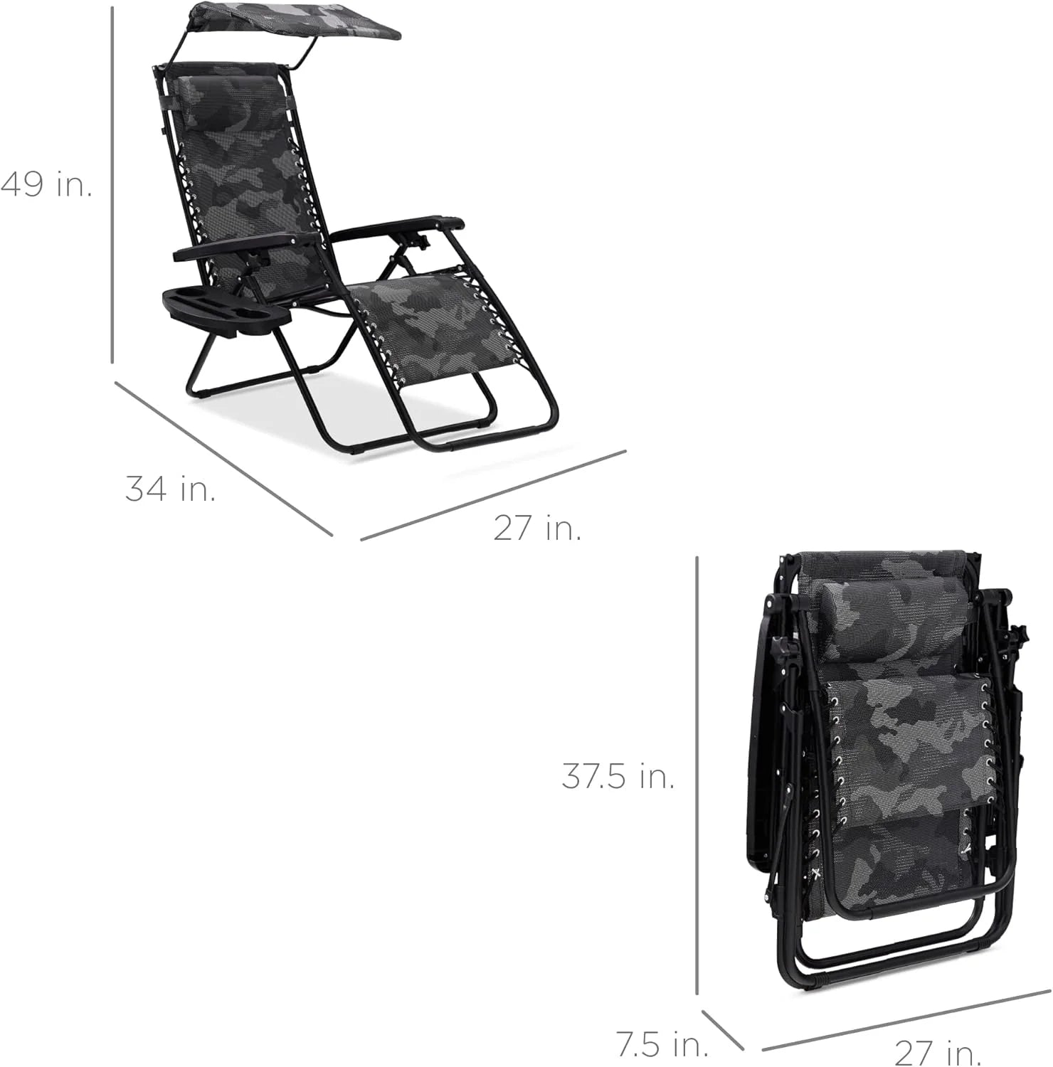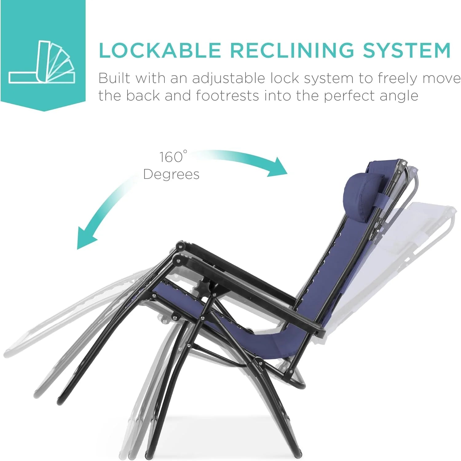 Best Choice Products Folding Zero Gravity Outdoor Recliner Patio Lounge Chair w/Adjustable Canopy Shade, Headrest, Side Accessory Tray, Textilene Mesh - Peacock Blue