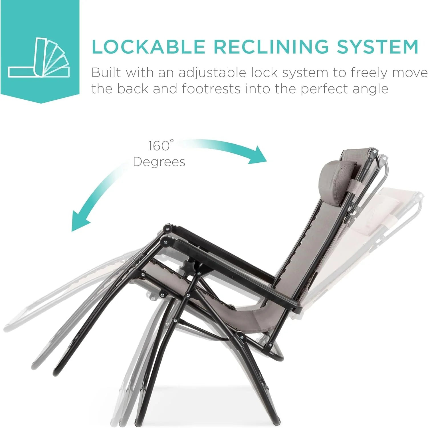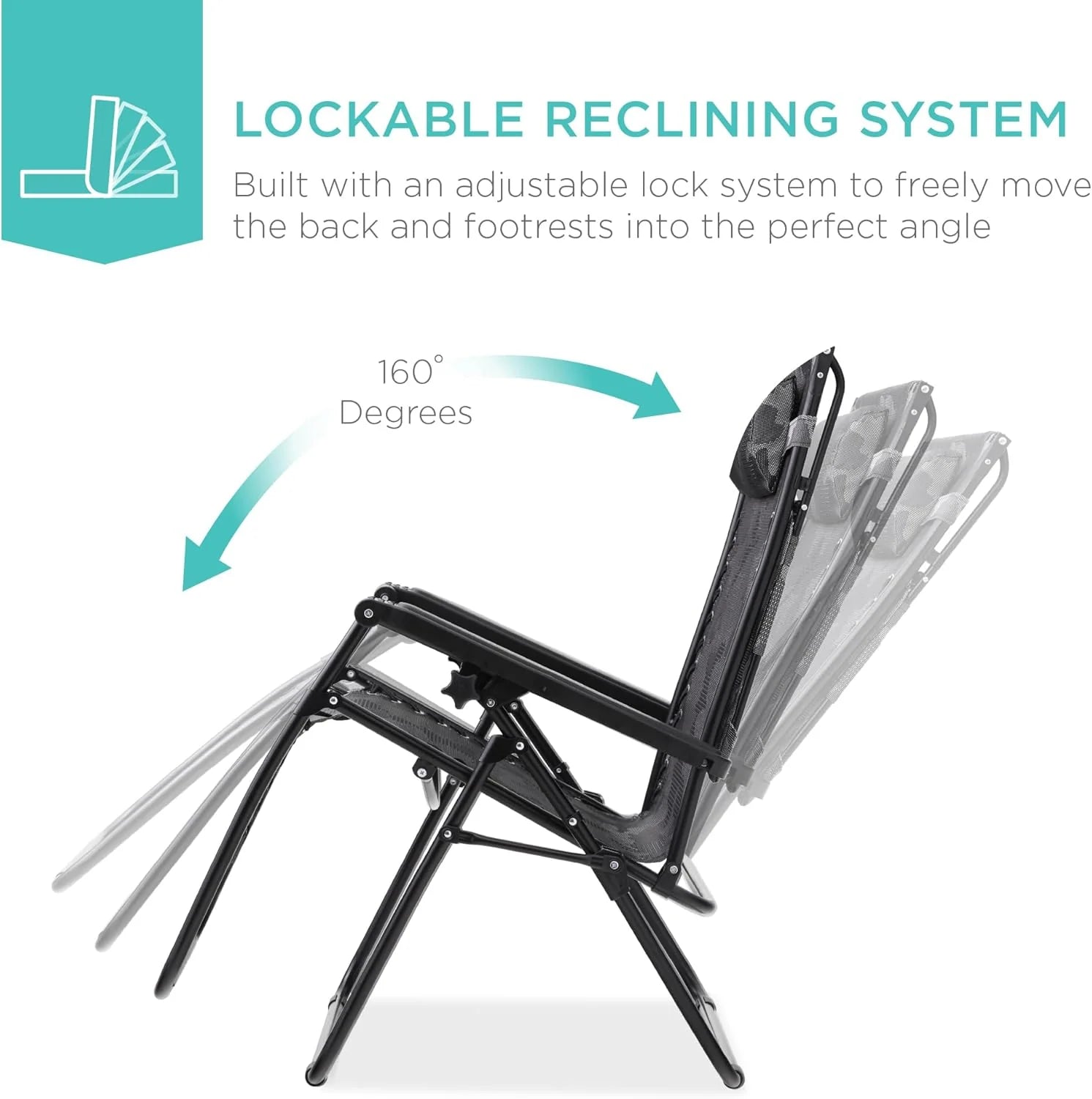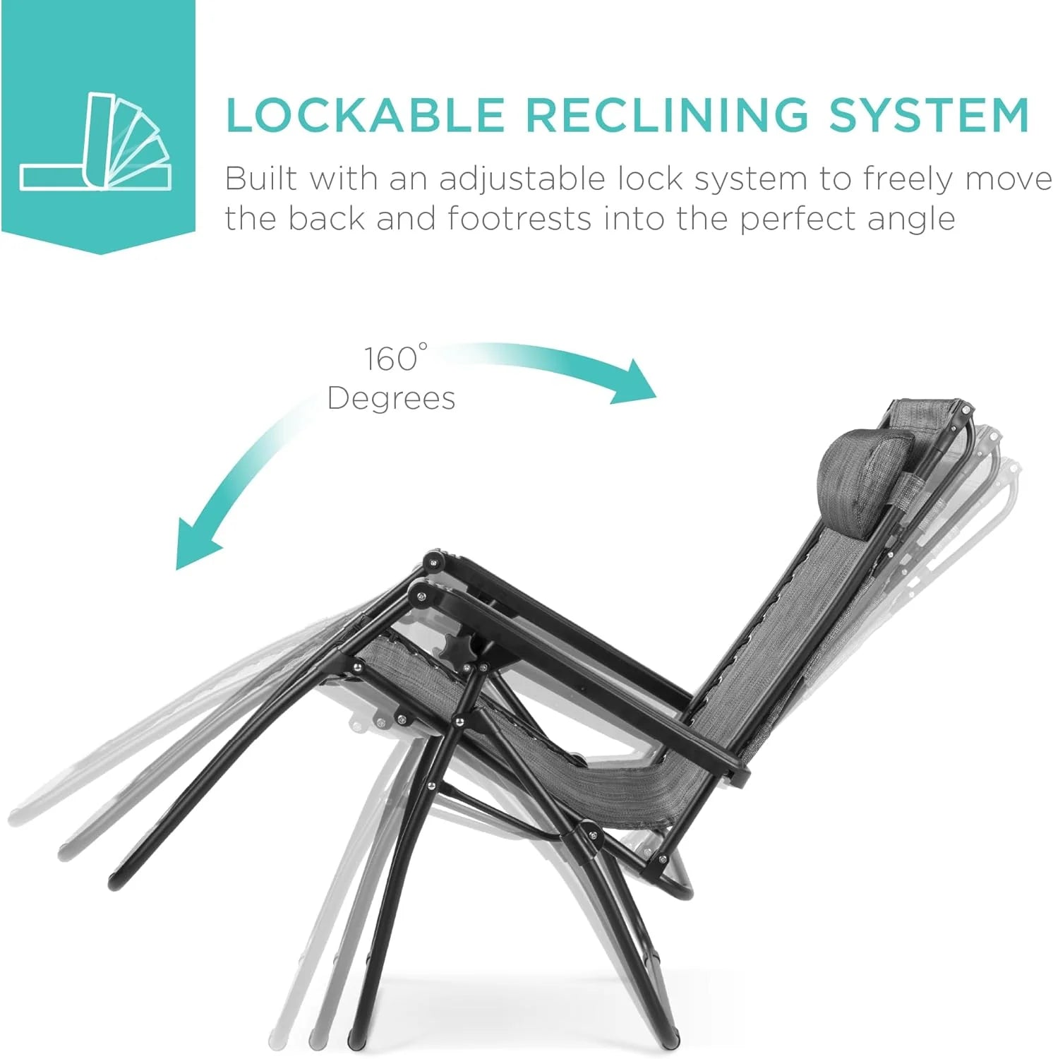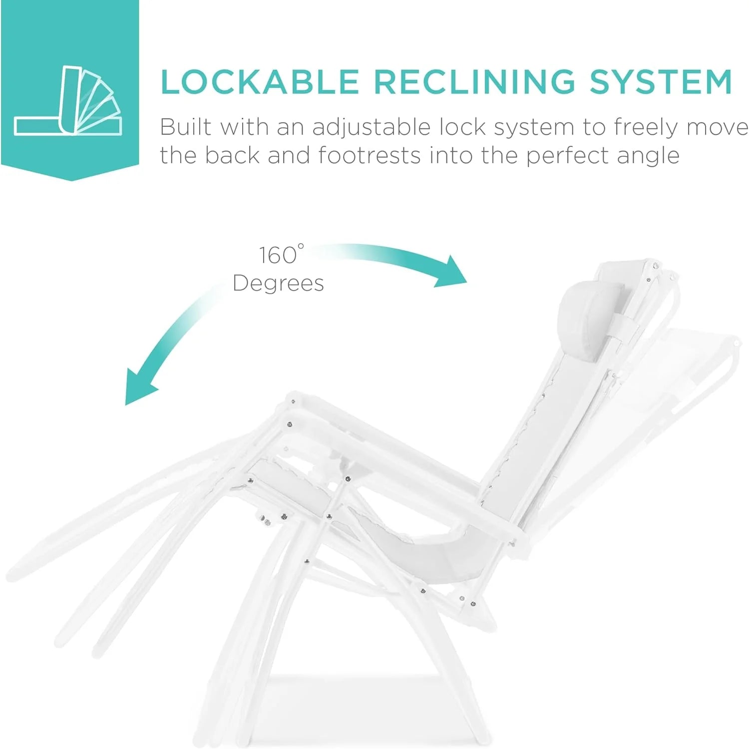 Best Choice Products Folding Zero Gravity Outdoor Recliner Patio Lounge Chair w/Adjustable Canopy Shade, Headrest, Side Accessory Tray, Textilene Mesh - Peacock Blue