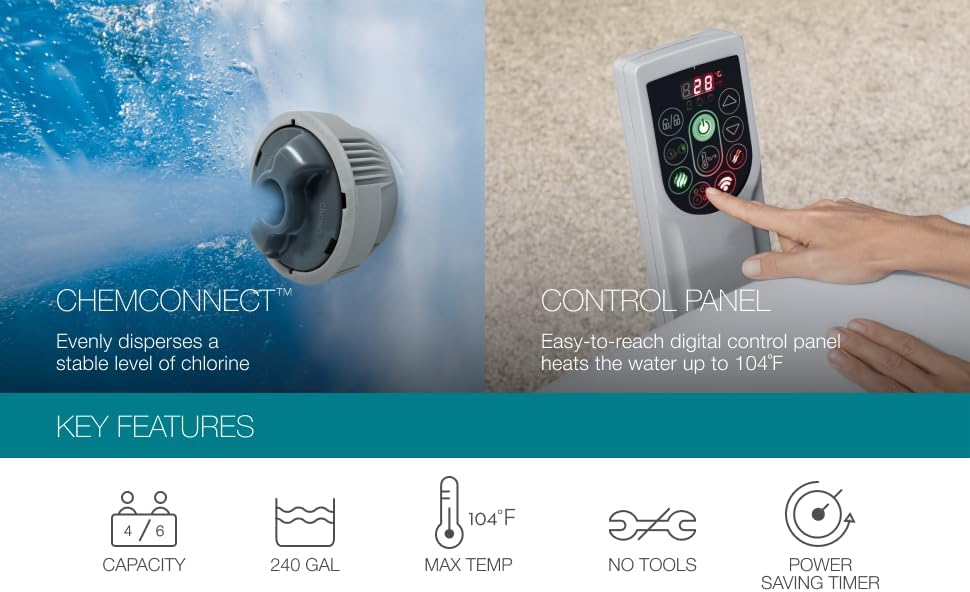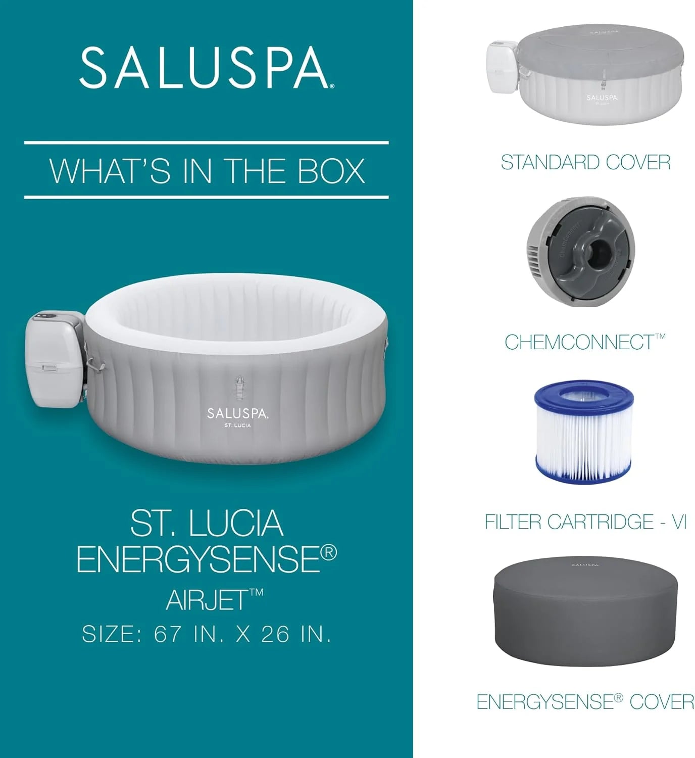 - 40% MORE ENERGY EFFICIENT: The specially constructed EnergySense insulated cover is 40% more energy efficient than similar inflatable spas. The cover prevents debris from collecting and retains heat more efficiently, meaning the water stays hotter and your energy bill stays lower.
