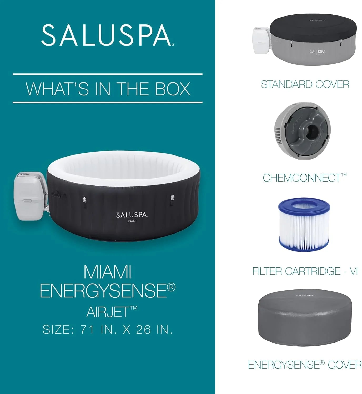 Bestway SaluSpa Miami EnergySense AirJet Inflatable Hot Tub Spa (71" x 26") | Portable Hot Tub with 2 Covers (1 Energy-Efficient Thermal Cover and 1 Standard Cover) | Fits Up to 2-4 Persons | Black
