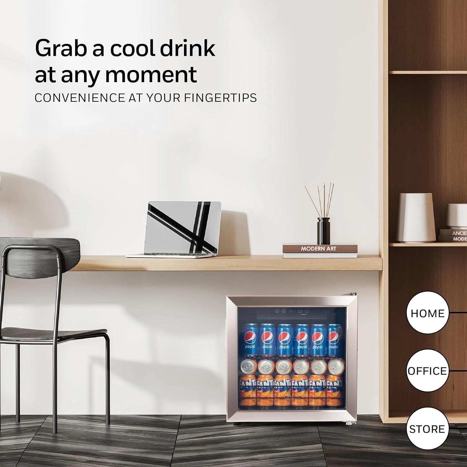 Beverage Refrigerator and Cooler, 115 Can Mini Fridge with Glass Door for Soda Beer or Wine for Office or Bar with Adjustable Removable Shelving