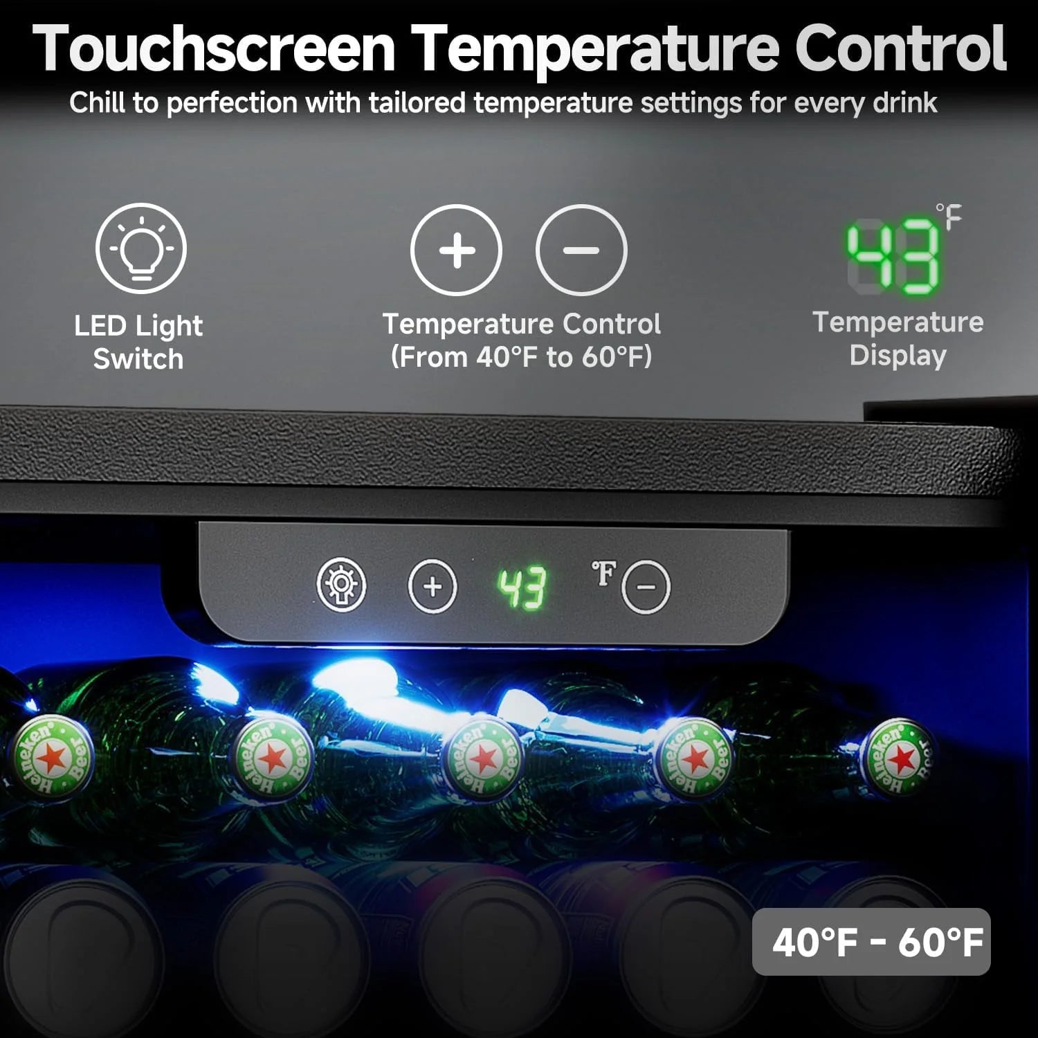- Low Noise & Energy Saving - Our beverage refrigerator is designed to provide a quiet and energy-efficient environment. With its high-quality compressor, it achieves a low noise level (36dB). The estimated energy cost is as low as 0.79 kWh (approximately 0.1 per day), ensuring a tranquil and cost-effective lifestyle.