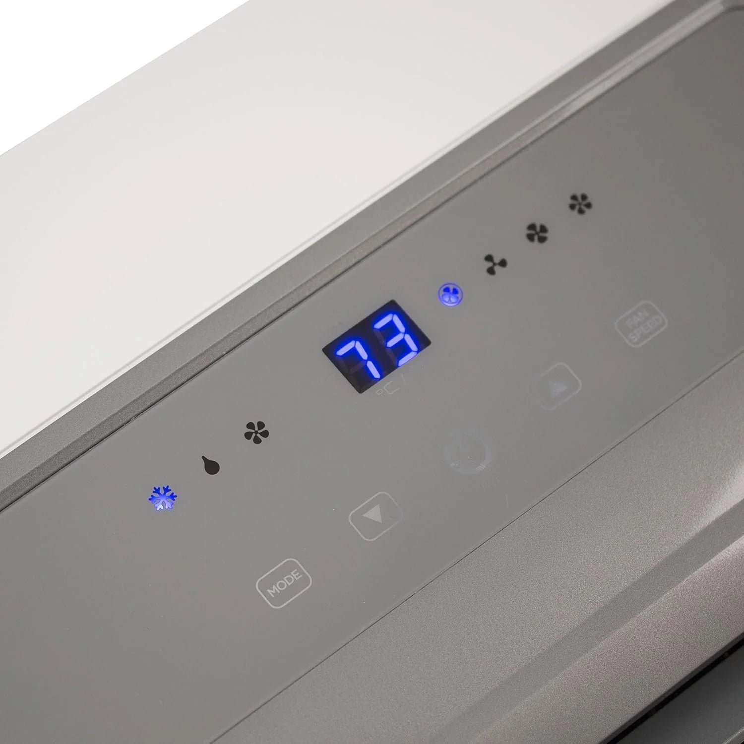 - 3-in-1: Our 4,100 BTU DOE (8000 BTU ASHRAE 128) air conditioner also functions as a dehumidifier & fan. This portable air conditioner (45.8 lbs.) has a convenient remote control & top mounted control panel with LED display.