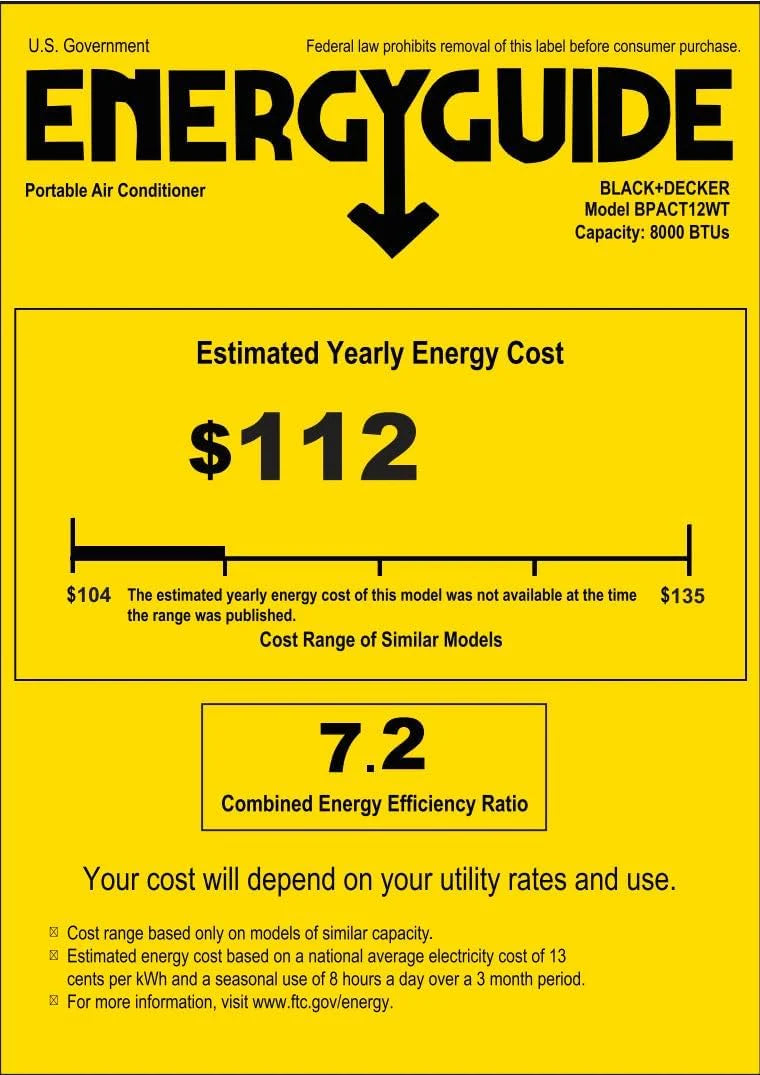 BLACK+DECKER 8,000 BTU Portable Air Conditioner for Rooms up to 350 Sq
